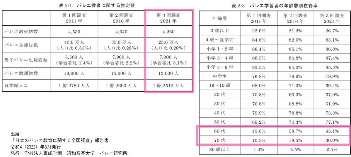 日本のバレエ人口は25万人と言われていますが、残念ながら少子化の影響もあり子どもの人数は減少傾向。しかし、大人、特に60代、70代の層が増えています。