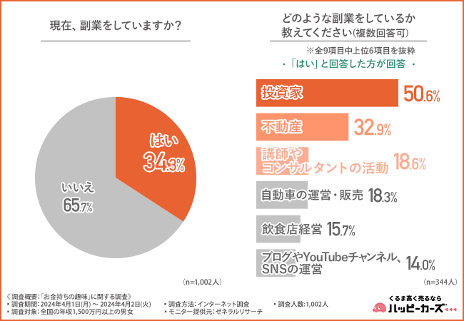 【年収1,500万円以上の男女】約3人に1人は副業をしていると回答!趣味を副業にするメリットは…