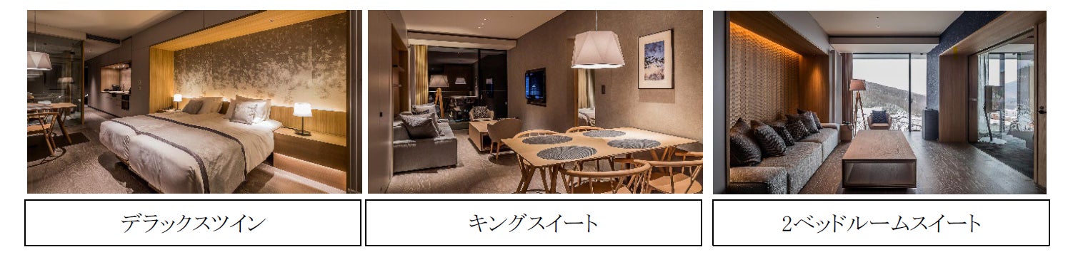付帯施設:オールデイダイニング(1)、ファインダイニング(1)、インフィニティ温泉(2)、檜の温泉(2)、スパ、スキーレンタル&ショップなど