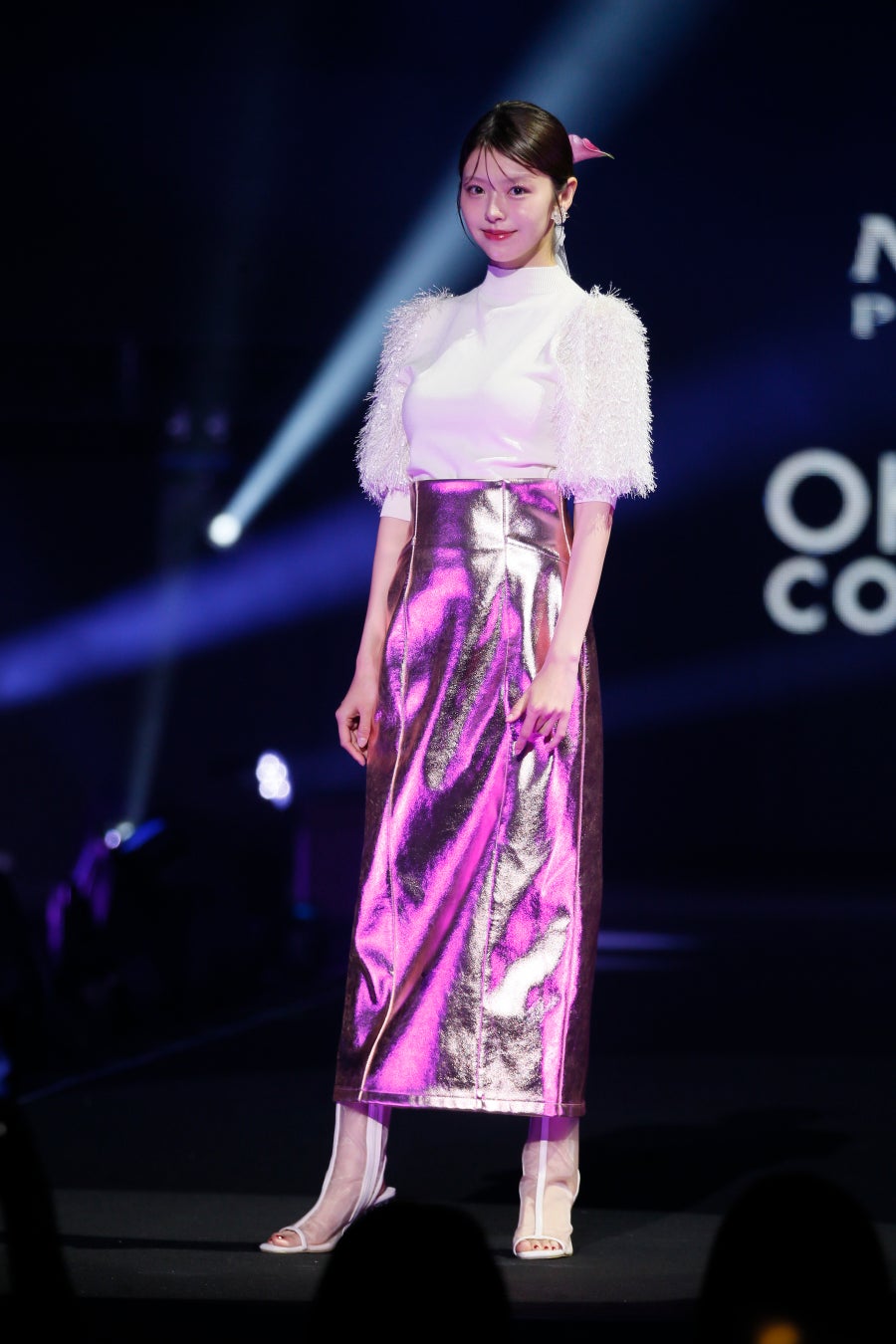 “いつでもどこでも女性らしく…大好きな人に可愛く見られたい”をコンセプトとし、上品な女性らしさを感じられる「Rady」は、人気モデルのPyunA.(ぴょな)が着こなすピンクのフリンジミニワンピースルックでスタート。夏らしいデニム のロングワンピースに身を包んだゆいちゃみや、胸元の薔薇モチーフがエレガントなホワイトコーデをまとったみりちゃむがランウェイを彩りました。