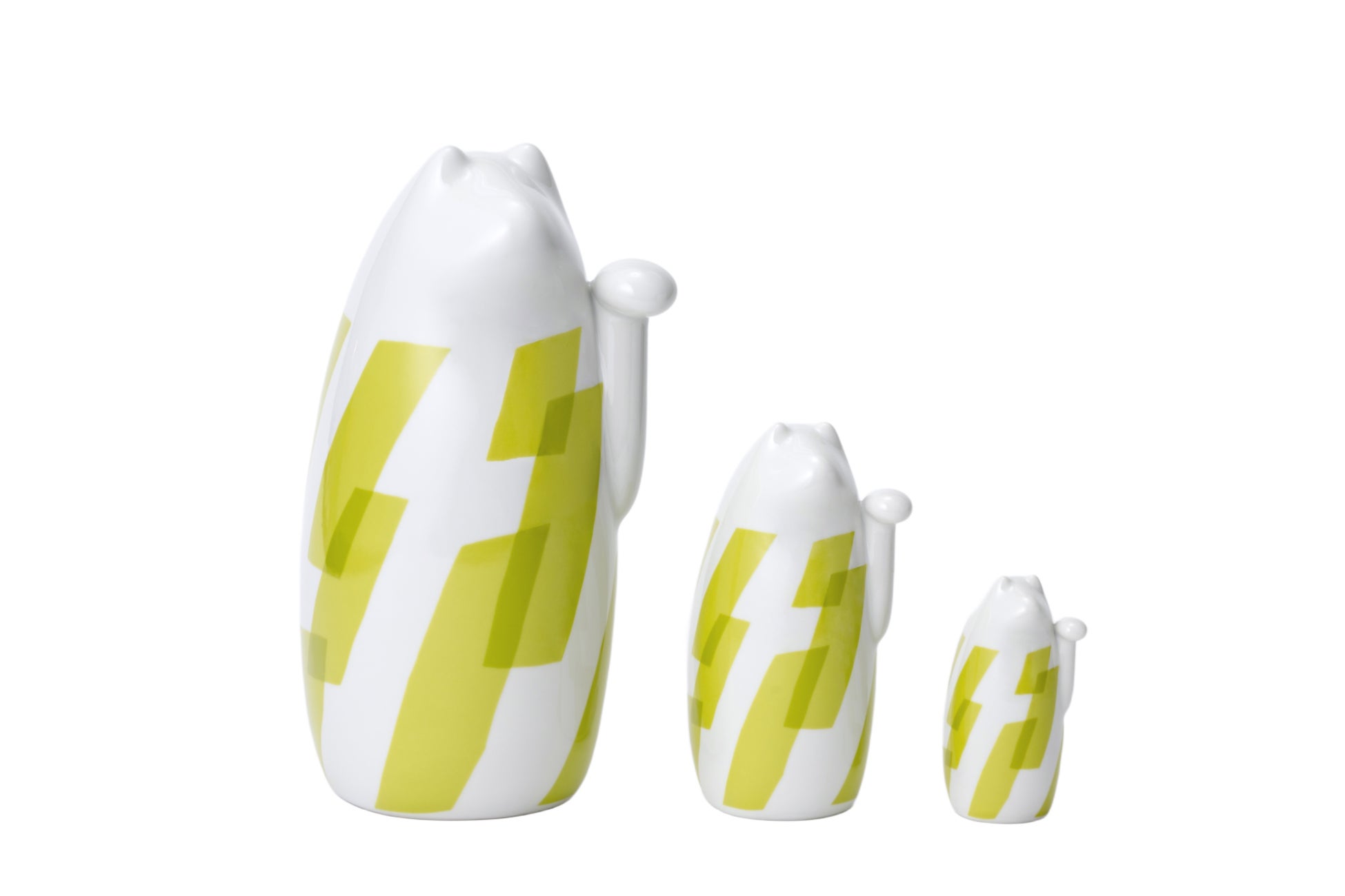 いつもはテキスタイルデザイナーとして模様を描き、色を付けるという事を仕事としていますが、もう少しフィジカルな制作、表現をしたいという思いは常に持っていました。そういった経緯から妻がセラミックアーティストということもあり、彼女に教えてもらいながら時間を見つけては陶で動物を作陶し、自身の展示に合わせて発表したりしていました。作陶の作業は手痕が濃く残るプリミティブなもので、デジタルを介する普段の仕事とは共通点はあれども、体感的には随分異なる魅力的なものでした。