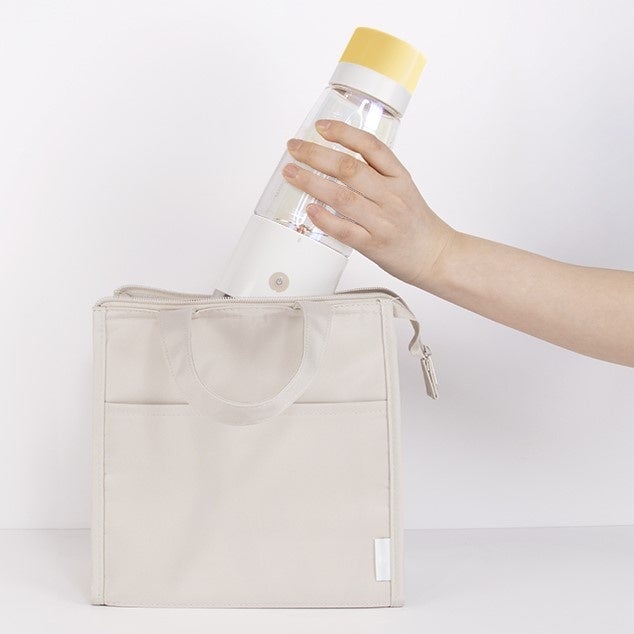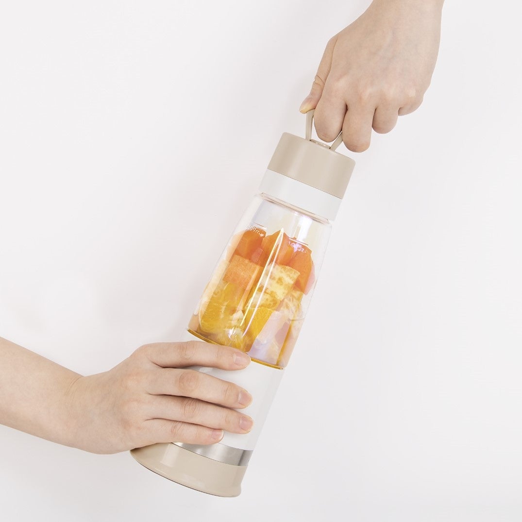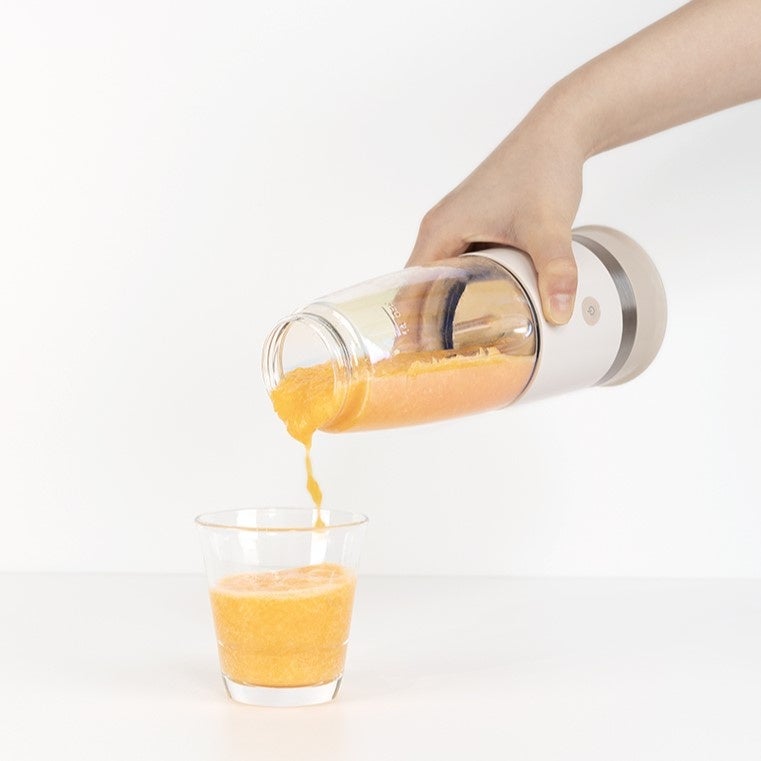 ブレンダーはコンパクトでバッグに収納しやすく、キャンプやピクニック、ジム、オフィスなど、どこでも便利に持ち運べます。撹拌後はボトルから直接飲むことができます。
