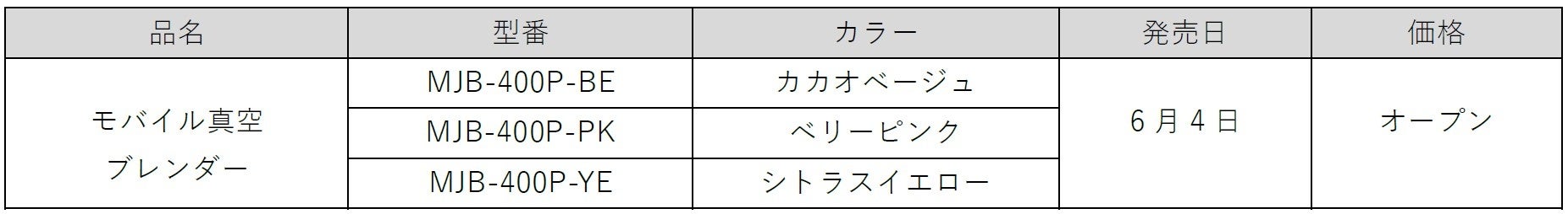 株式会社電響社(大阪市浪速区、代表取締役社長:山下 俊治)は、macaful(マカフル)ブランドから「モバイル真空ブレンダー MJB-400P」全3色を、2024年6月4日に発売いたします。