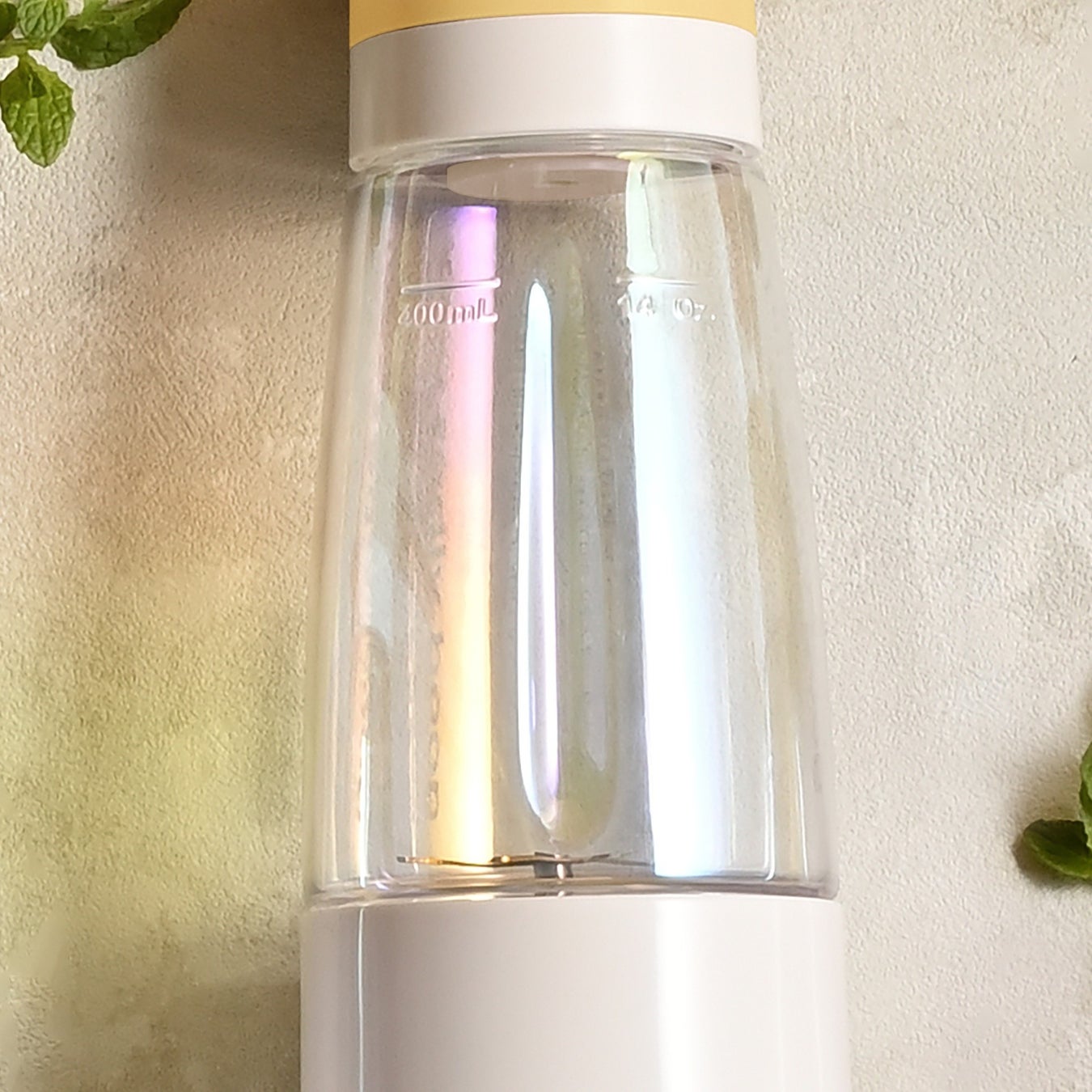 ボトルは3色共通で、割れにくいプラスチック素材を採用し、光の角度であざやかに輝くオーロラコーティングを施しています。
