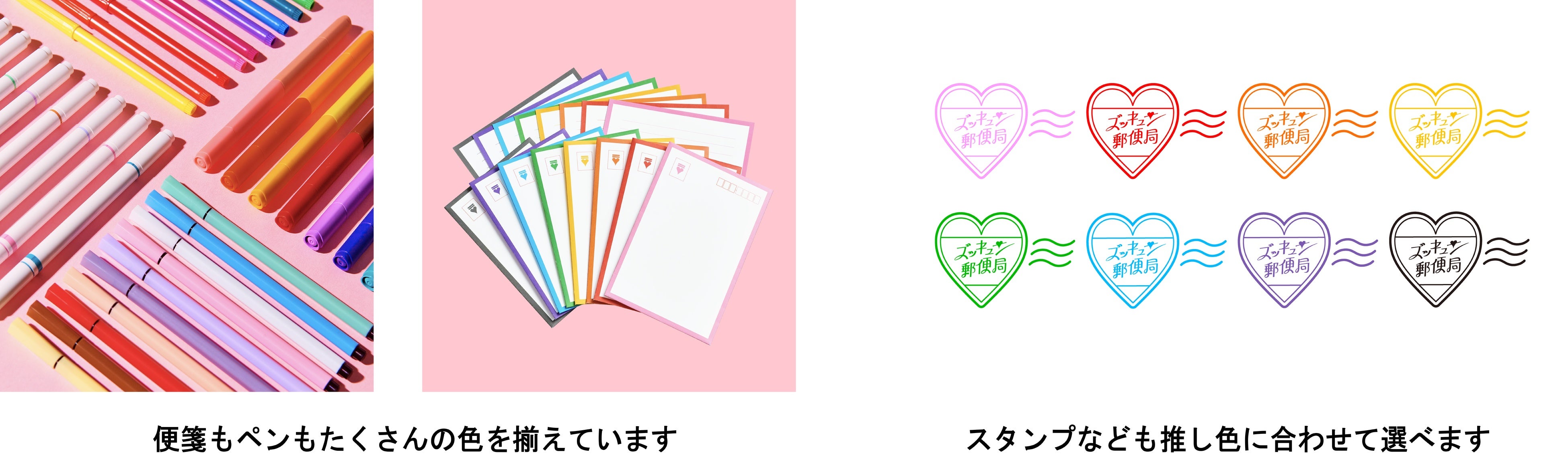 その場で自分の好きな色の便箋・封筒を自由に選べて推し活もできる手紙体験や、ズッキュン♡郵便局in Osaka限定オリジナルグッズの購入、「ズッキュン♡ドリンク」のプレゼントなど、これまでにない郵便局をお楽しみいただけます。