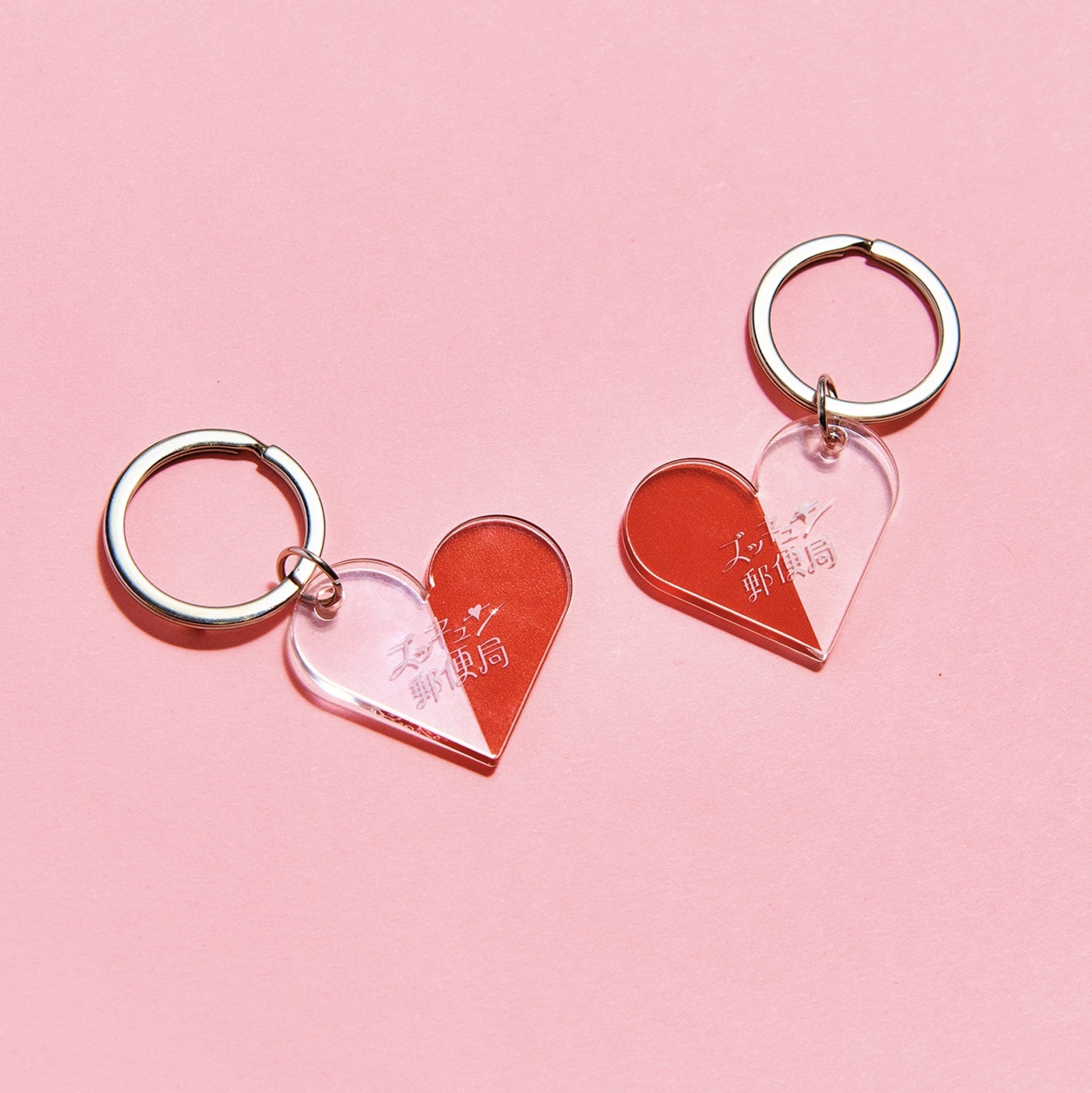 重ねると赤いハートが完成!キーホルダー 各600円(税込)
