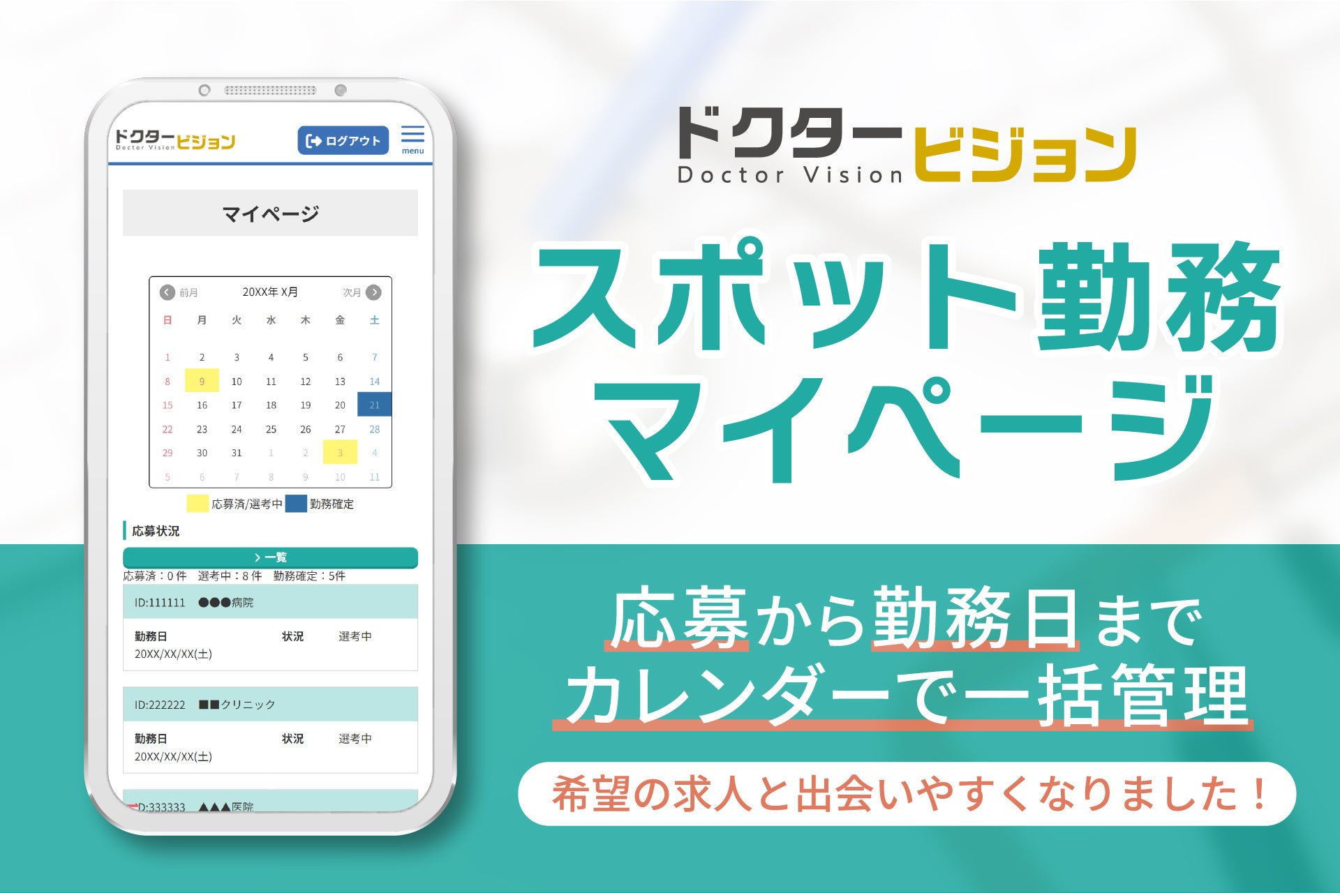 医師の求人・転職に特化した専門サイト/ドクタービジョン「スポット勤務マイページ」