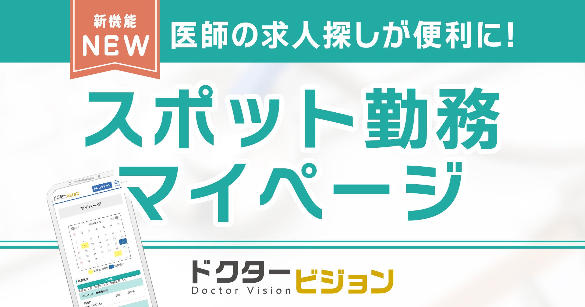 【医師向け】ドクタービジョンにおいて、「スポット勤務マイページ」機能をリリース】~忙しい医師の隙間時間にスポットバイトへ応募可能に~