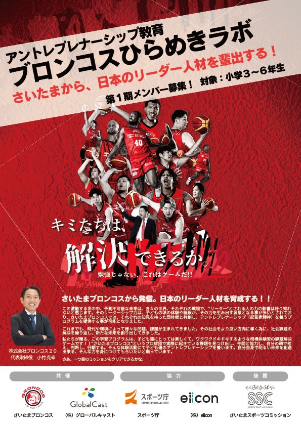 さいたまブロンコスと株式会社グローバルキャストが共創アントレプレナーシップ教育【ブロンコスひらめきラボ】募集開始