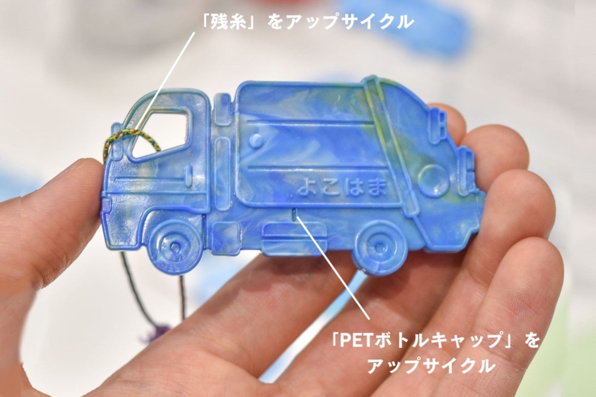 今回、新たにミシン糸のトップメーカーである大貫繊維と連携し、PETボトルキャップをリサイクルして作ったキーホルダーに、廃棄予定の残糸から作ったストラップを付けて、リサイクルキーホルダーを完成させるという新しい取り組みを実施しました。