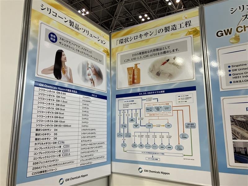 展示会場においては、バイオ由来のカルボマー(化粧品等に使われるポリマー)の開発品を上市予定です。また、需要の更なる拡大が見込まれるシリコーンについても、多数のサンプル品展示を予定しています。利用用途が幅広いシリコーンは、安定供給のニーズも非常に高く、当社ではお客様の採用品目数が増えたことにより、在庫品目数及び在庫場所(国内東西エリアに拡充)を更に拡大しております。
