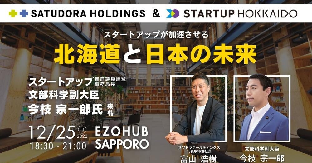 北海道・北海道経済産業局・札幌市の3行政をはじめとする産学官がオール北海道体制で、本道のスタートアップ・エコシステム構築を目指すSTARTUP HOKKAIDO実行委員会(所在地:北海道札幌市、実行委員長 土田美那、以下「STARTUP HOKKAIDO」)は、インキュベーションスペース「EZOHUB SAPPORO」を運営するサツドラホールディングスとのコラボイベントを12月25日(月)に開催します。
