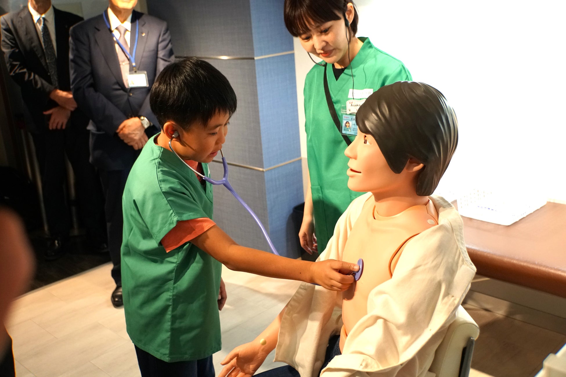 今回、日本医師会では子ども達に実際に診療行為を疑似体験してもらうことで、そこから始まる包括的で、全人的な医療について知ってもらい、「かかりつけ医」を身近に感じてもらうとともに、その「かかりつけ医」を下支えしているのが日本医師会であることを知ってもらうきっかけとなればと考え、出展を行ったものです。