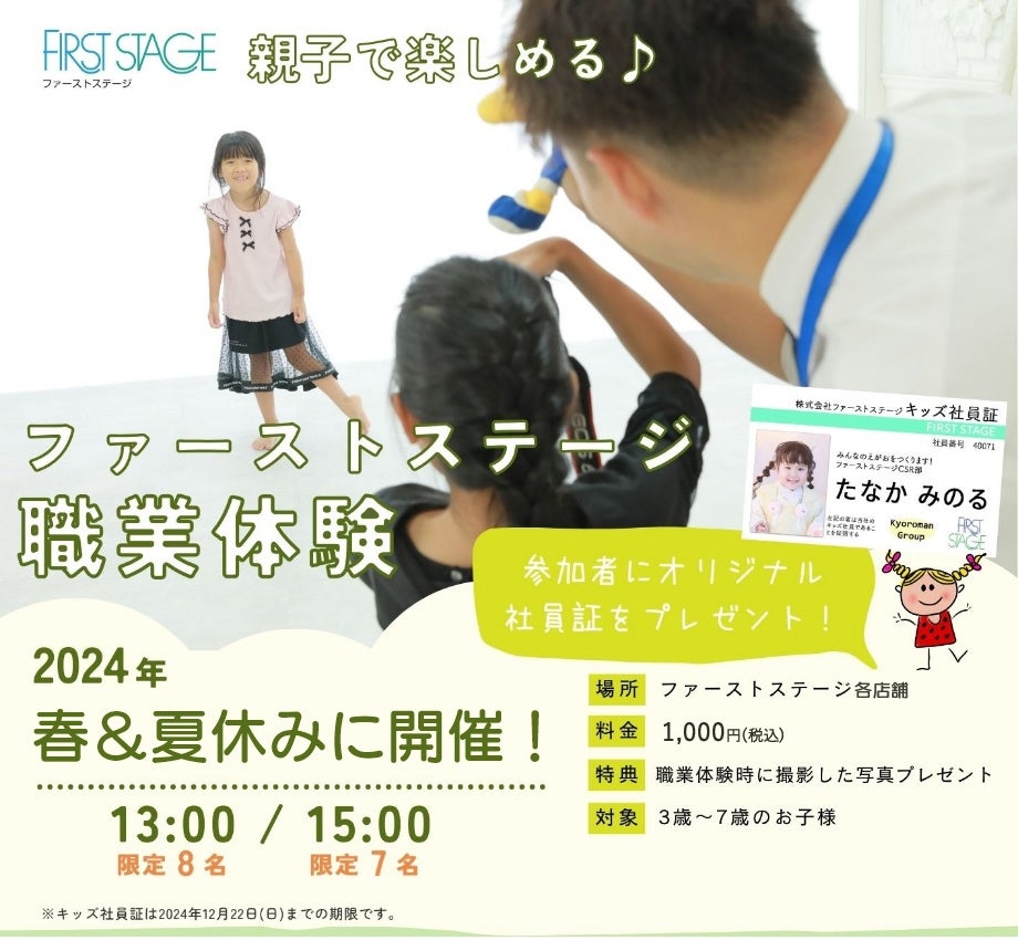 ファーストステージのキッズ社員として写真館のお仕事を体験できる職業体験イベントを2024年4月3日(水)~4月5日(金)に開催いたしました。