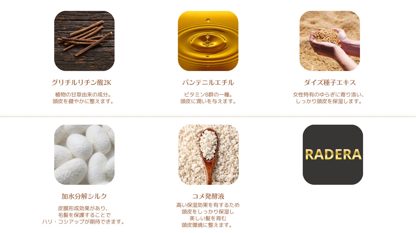 ハリ・コシ・ツヤを与え、美しく豊かな髪へと導きます。
