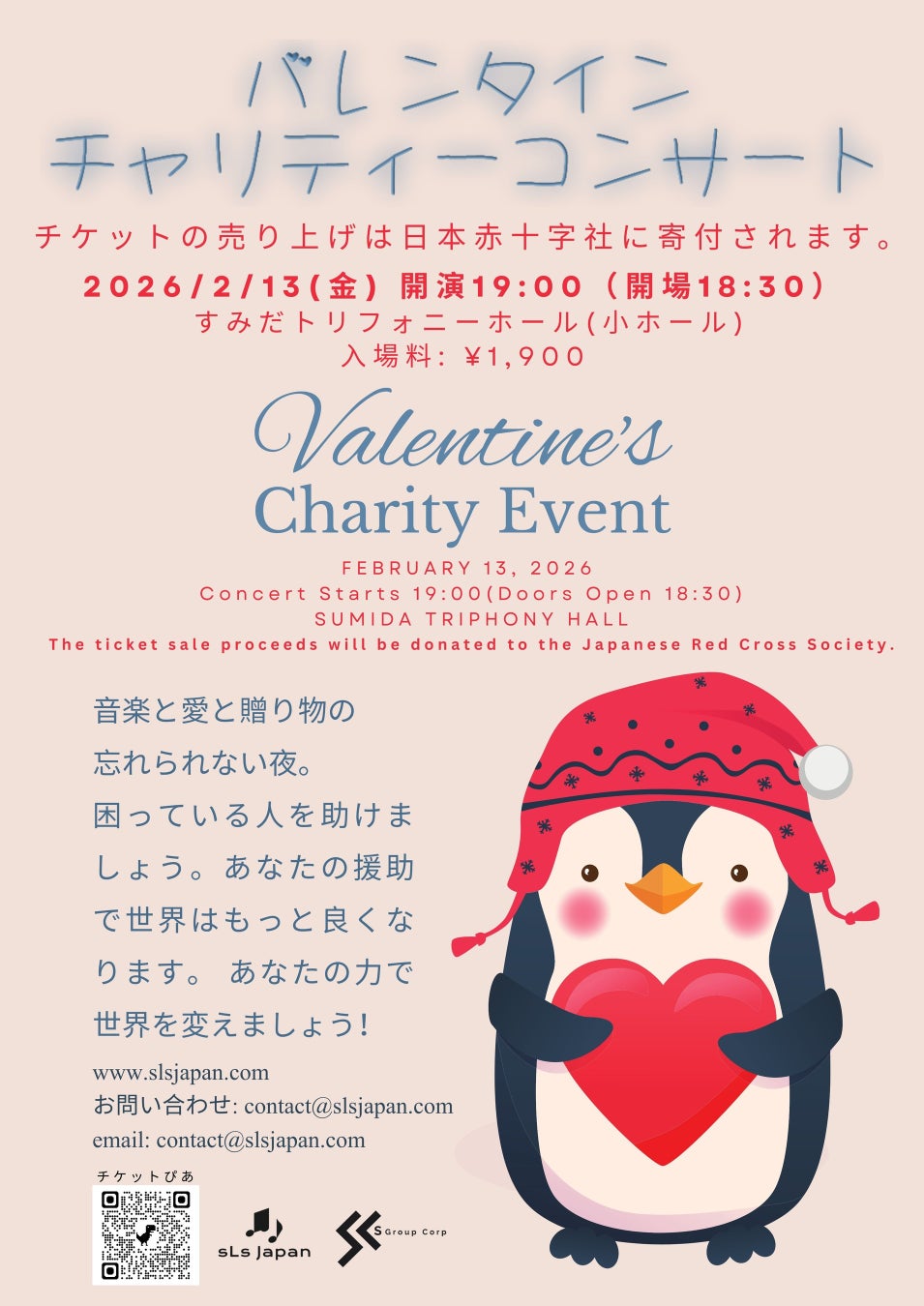 sLsグループ株式会社が運営するsLs音楽アカデミー(sLs Music Academy)は、バレンタインデーの前日、2月13日にチャリティーコンサートを開催いたします。