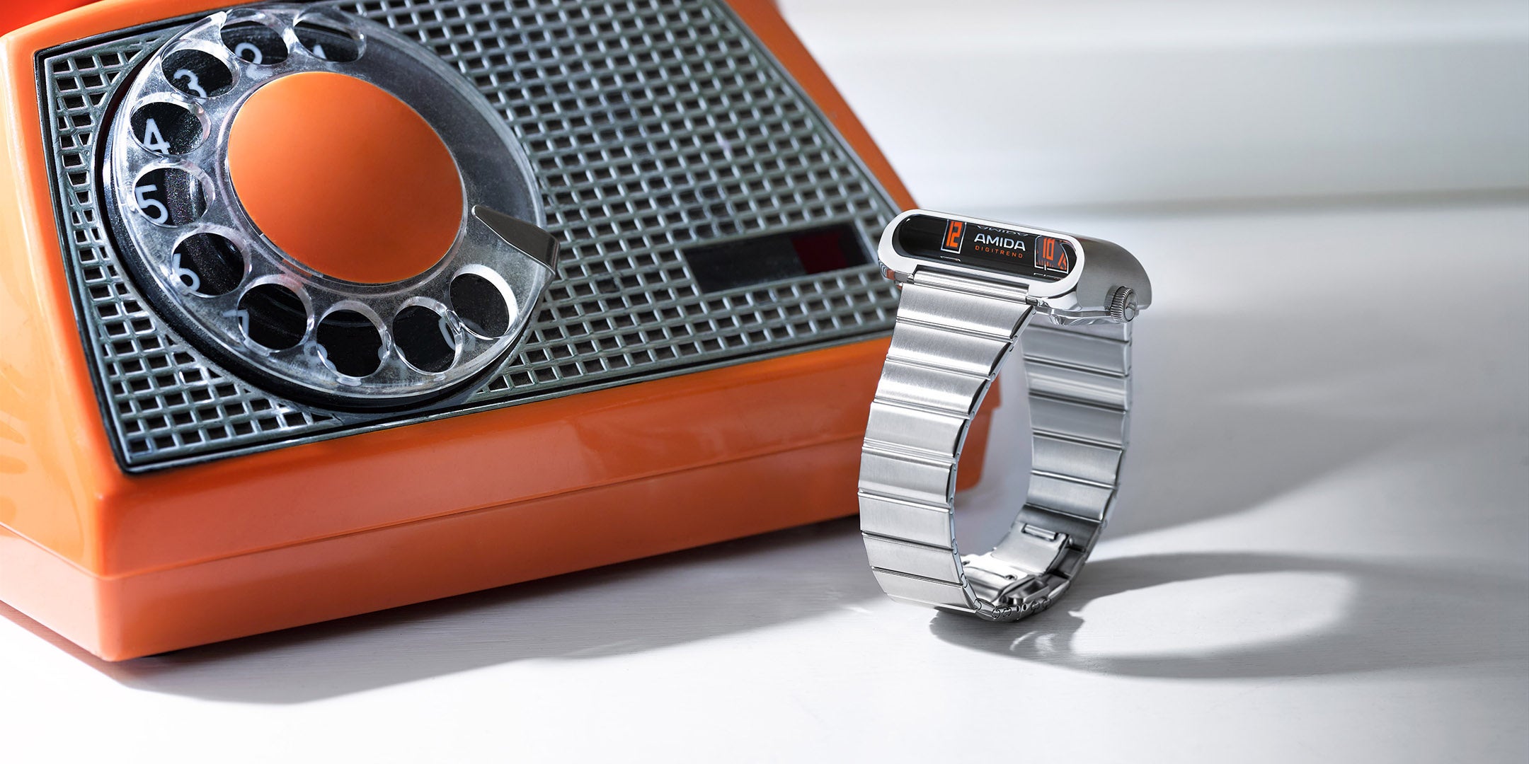 AMIDAは1925年に創業したスイスの独立系時計ブランドです。1976年に発表した「デジトレンド(Digitrend)」は、時間表示が一瞬で切り替わる機構(ジャンピングアワー)と三角柱(プリズム)を使った独自のデジタル表示を組み合わせた機械式腕時計で、その革新性により国際的な評価を獲得しました。2024年、AMIDAはブランドを再興。1950〜70年代の宇宙開発時代(スペースエイジ)の美学を取り入れたレトロ未来的デザインを継承しながら、現代の高精度スイス時計製造技術を融合させました。新しい「デジトレンド」は、オリジナルの革新精神を大切に守りつつ、デザインと機構をさらに洗練させています。