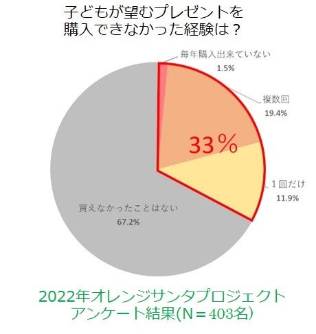サンタからクリスマスプレゼントが届かない経験をもつ子どもは約3割