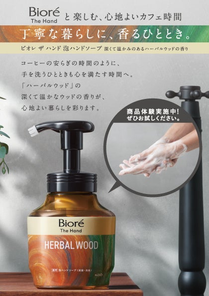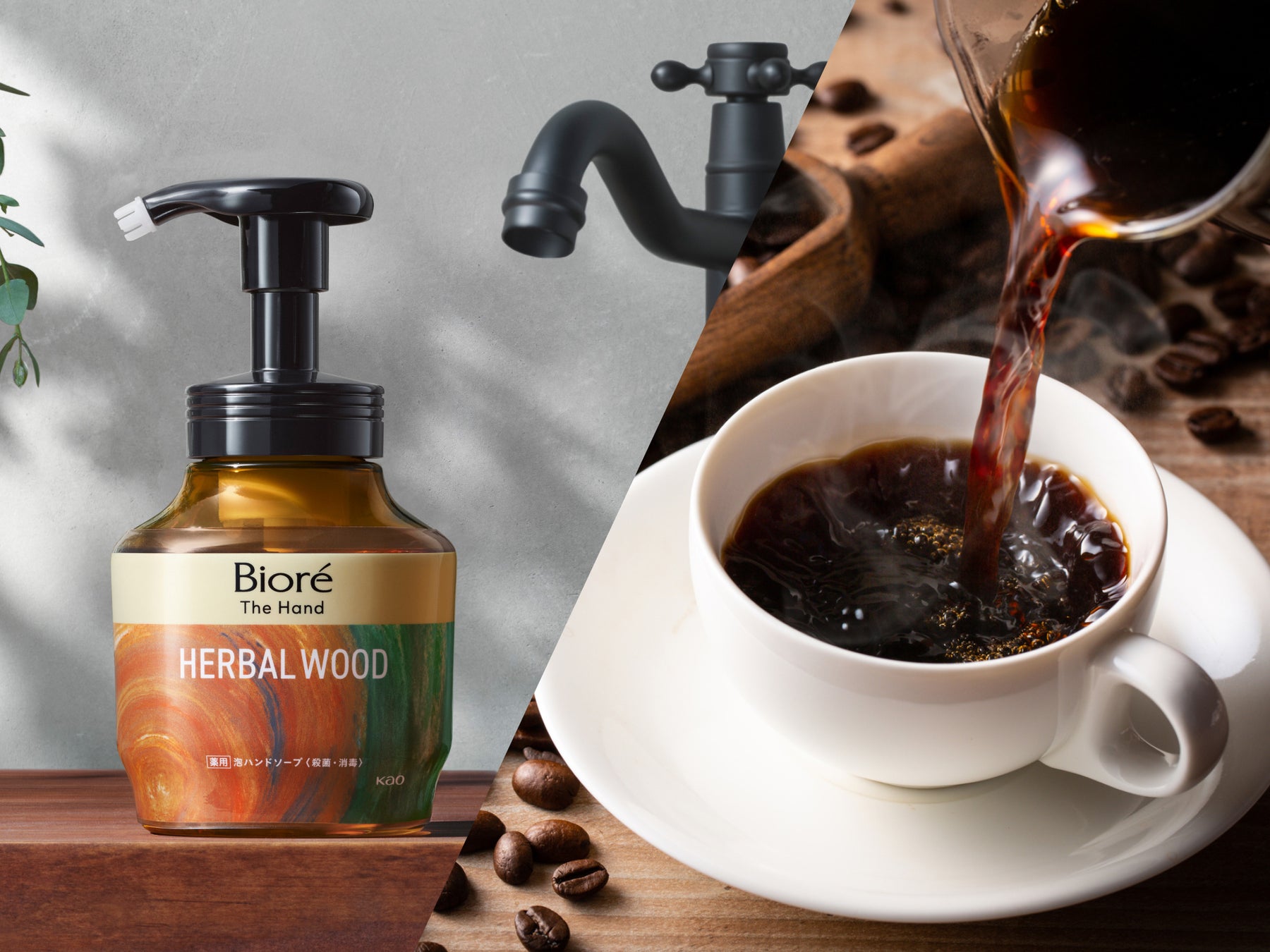そこで、“香り”と“デザイン”にこだわった「ビオレ ザ ハンド 深くて温かみのあるハーバルウッドの香り」を、日々の暮らしを整えアップデートする場所でもある「コーヒーショップ」で体験していただけるコラボレーション企画を実施いたします。