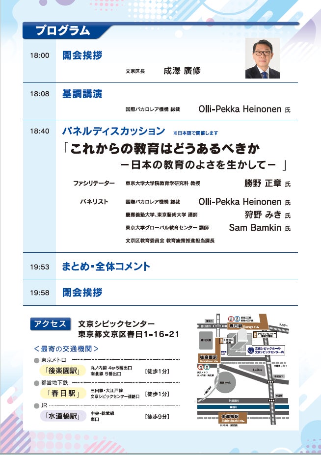 文京区教育委員会×国際バカロレア機構「これからの教育を考えるシンポジウム」=東京都文京区