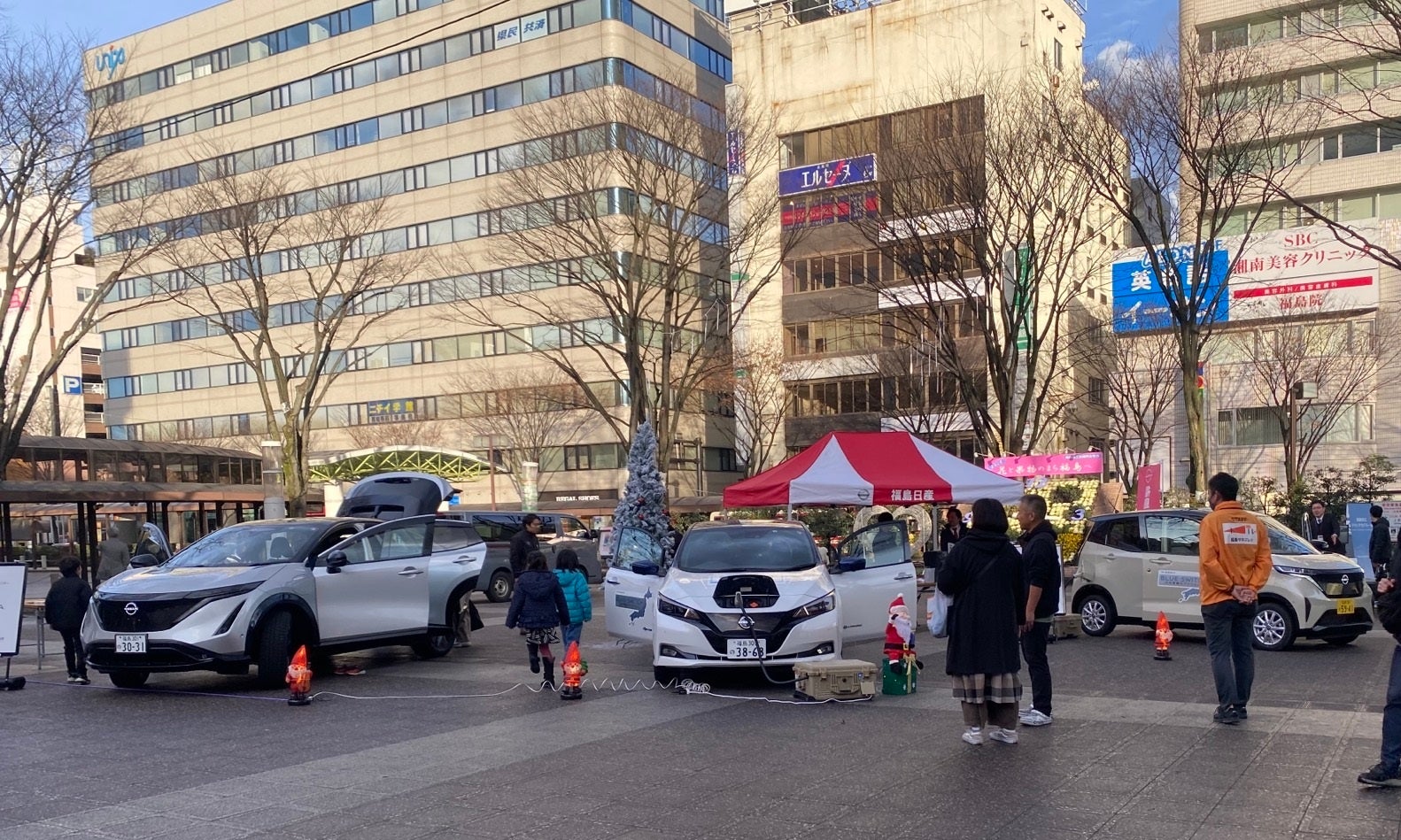 メリーフクニチャージ!中テレクリスマスドリーム「親子で楽しむ!クリスマス スケートリンク in エスパル福島」で子供たちへクリスマスの思い出を。福島駅東口前駅前広場に電気自動車でクリスマスに彩りを!