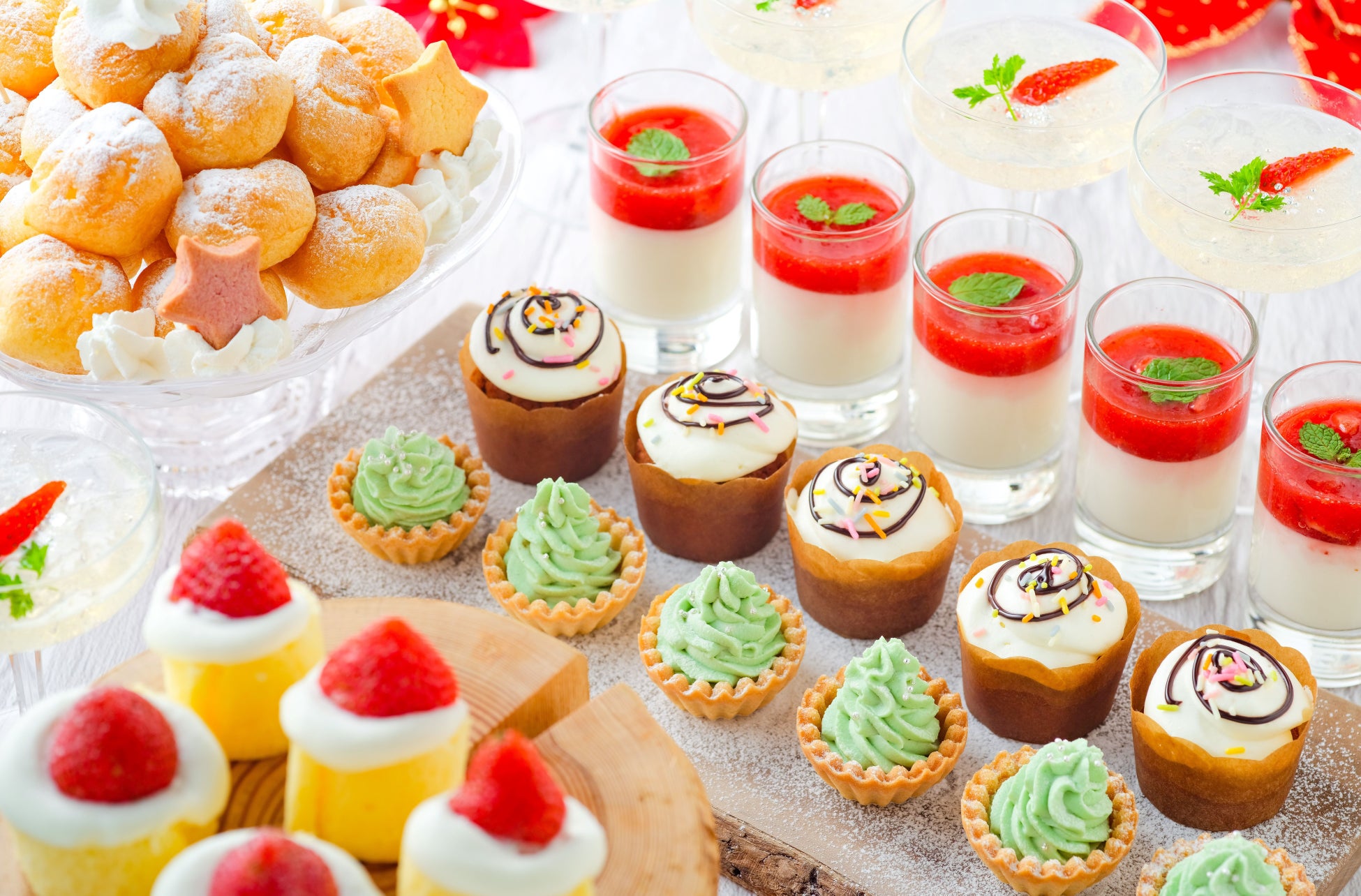 食事会場「Live×Buffet ヒカリノモリ」のケーキは全てパティシエ特製です。ぜひ可愛らしく盛り付けてお召し上がりください。
