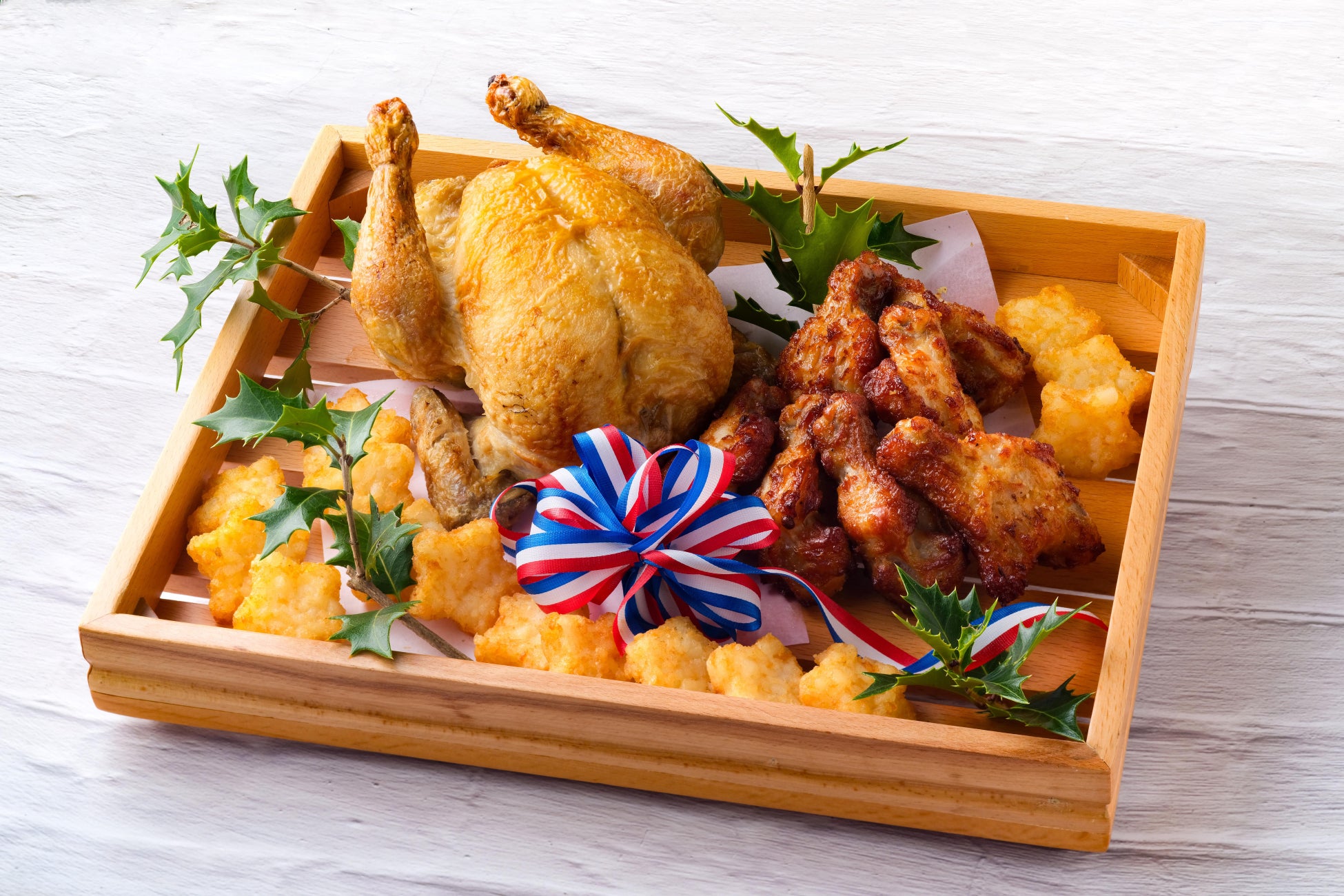 クリスマスといえばローストチキン。星型ポテトもご一緒に提供いたします。