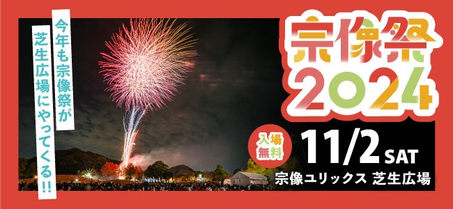 宗像祭の最後を締めくくるのは、昨年も好評だった世界花火師競技会優勝のワキノアートファクトリーによる、打ち上げ音楽花火。約3000発の花火と音楽が夜空を明るく照らします。