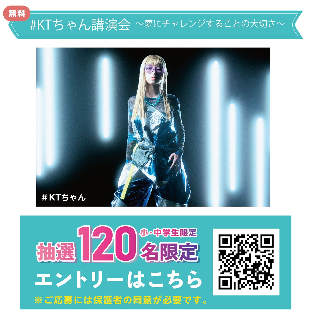 参加は小学生・中学生限定で抽選120名様。講演会終了後には芝生広場のステージで#KTちゃんのLIVEパフォーマンス&約3000発の音楽花火も打ち上げます!ご応募お待ちしてます!