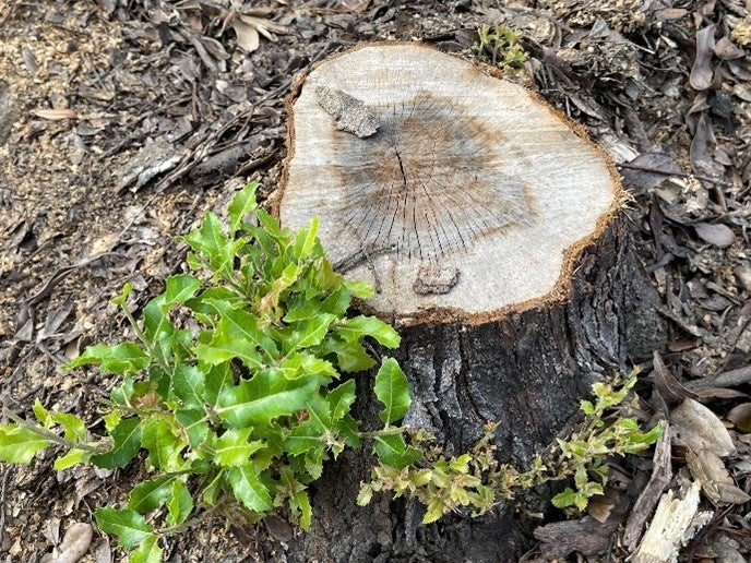 里山の中核を成す広葉樹では、遷移に伴う林冠閉鎖により林内・林床への光量が低下することで、下層植生の・昆虫・動物の成育を阻害し、生物多様性が低下した森林状態を生み出します。樵木林業は、直径10cm以上の幹を選択的に伐採し、林床に光を入れ、切り株からの萌芽更新を促成することで、10年~15年周期での短期伐採を可能とする択伐型の短伐期広葉樹施業です。樵木林業によって、里山に様々な成長段階の森林を作成することにより、成長ステージ差のある複雑な林相が構成され、多様な動植物の生息が期待されます。また、全国で被害が拡大する“ナラ枯れ”は、広葉樹の大径化が拡大の一因とされていますが、樵木林業により森林を若返らせることで、森林環境の回復にも効果の発揮も期待できます。