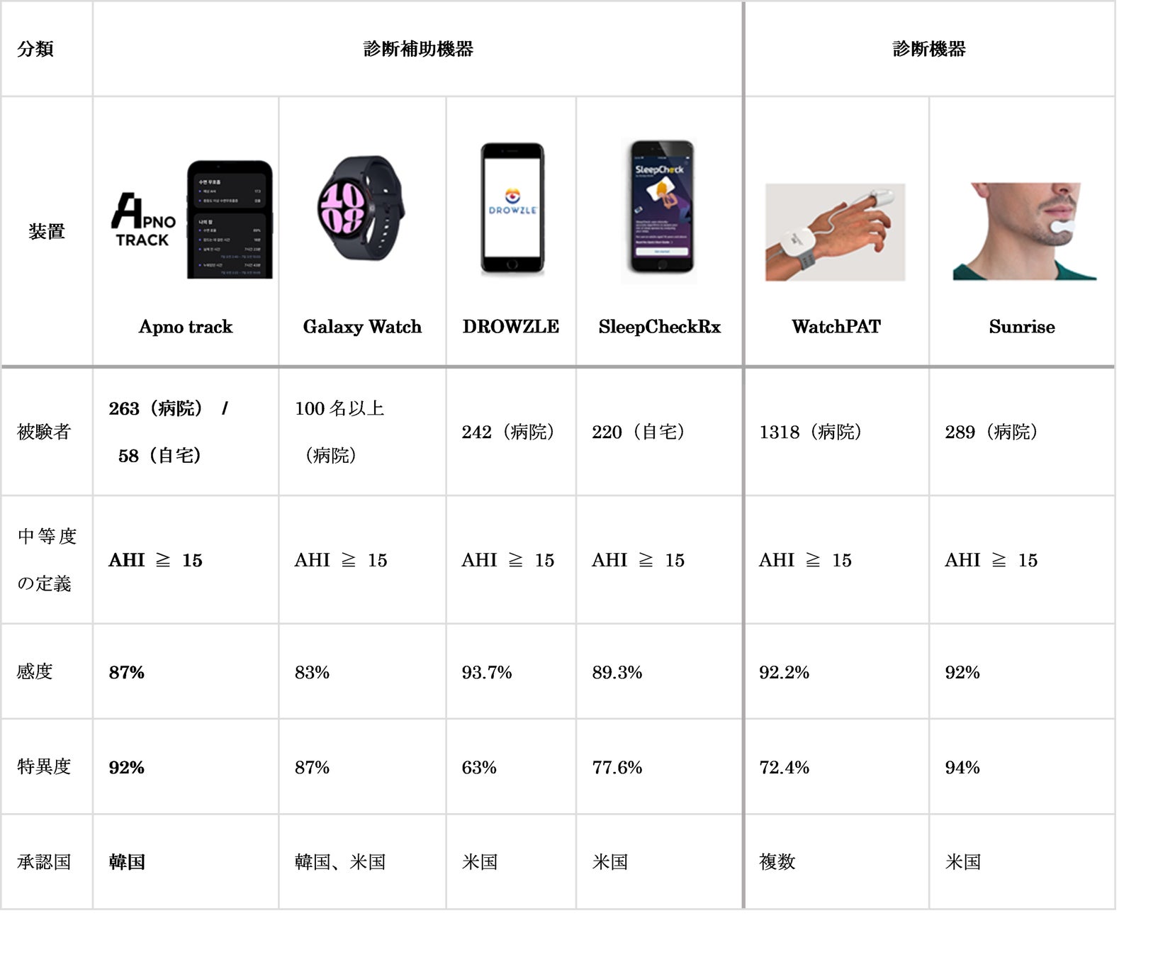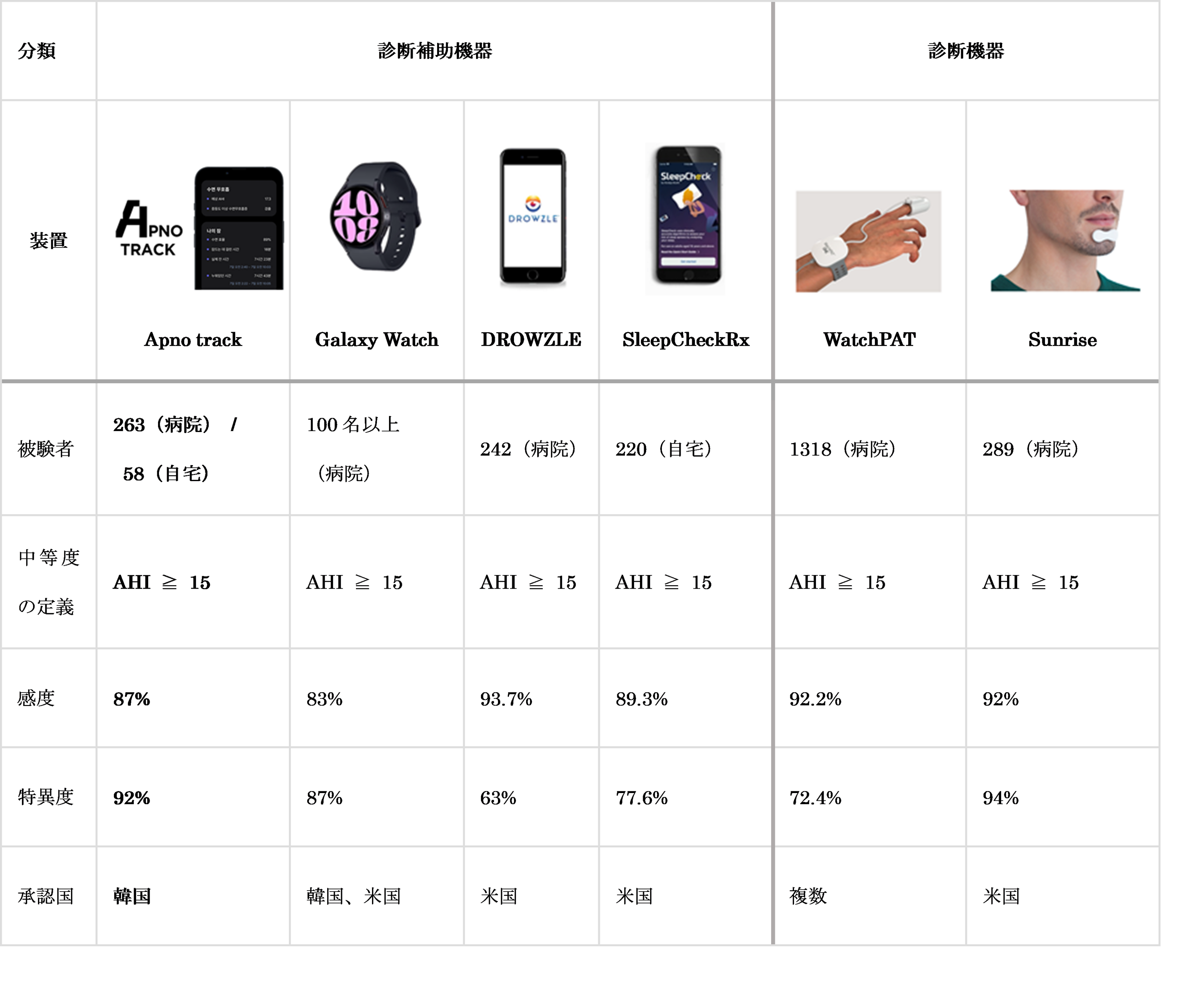 今回、専用デバイス不要で睡眠時無呼吸症候群の検査可能なアプリが診断補助医療機器として承認を受けたのは韓国初であり、既に承認済みのウェアラブルデバイスなどと比較しても高い精度を実現しています。
