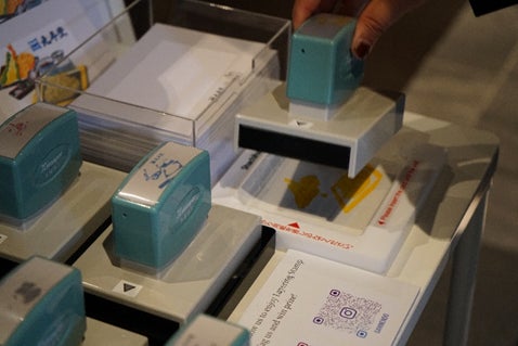 シヤチハタのブランドヒストリーを伝えるパネル展示とともに、約20種類のハンコを自由に捺して楽しめる「シヤチハタビュッフェ」や、オリジナル印づくり(有料)などで、シヤチハタのハンコのバリエーションの豊かさと性能の高さを伝えます。