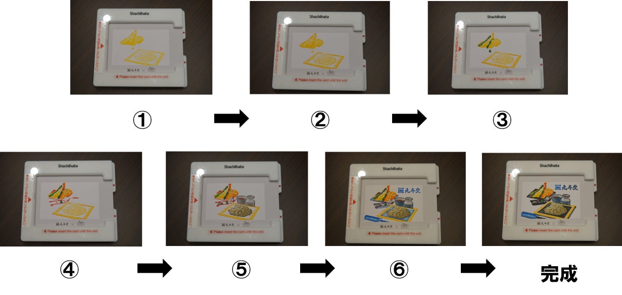 「天ぷら蕎麦冷」重ね捺しの工程(①~⑦)
