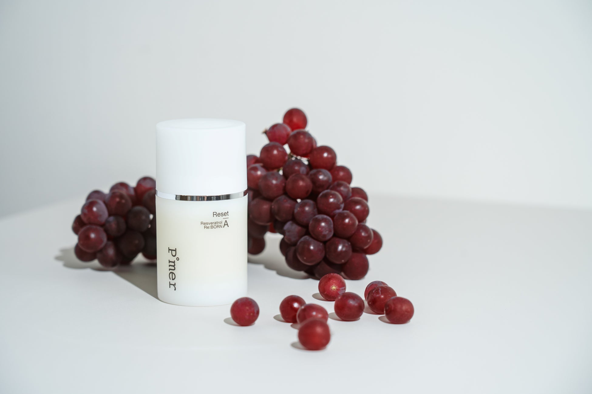 「リセット・レスベラトロール美容液」に配合されるレスベラトロールは、赤ブドウ由来のポリフェノール成分の一つです。