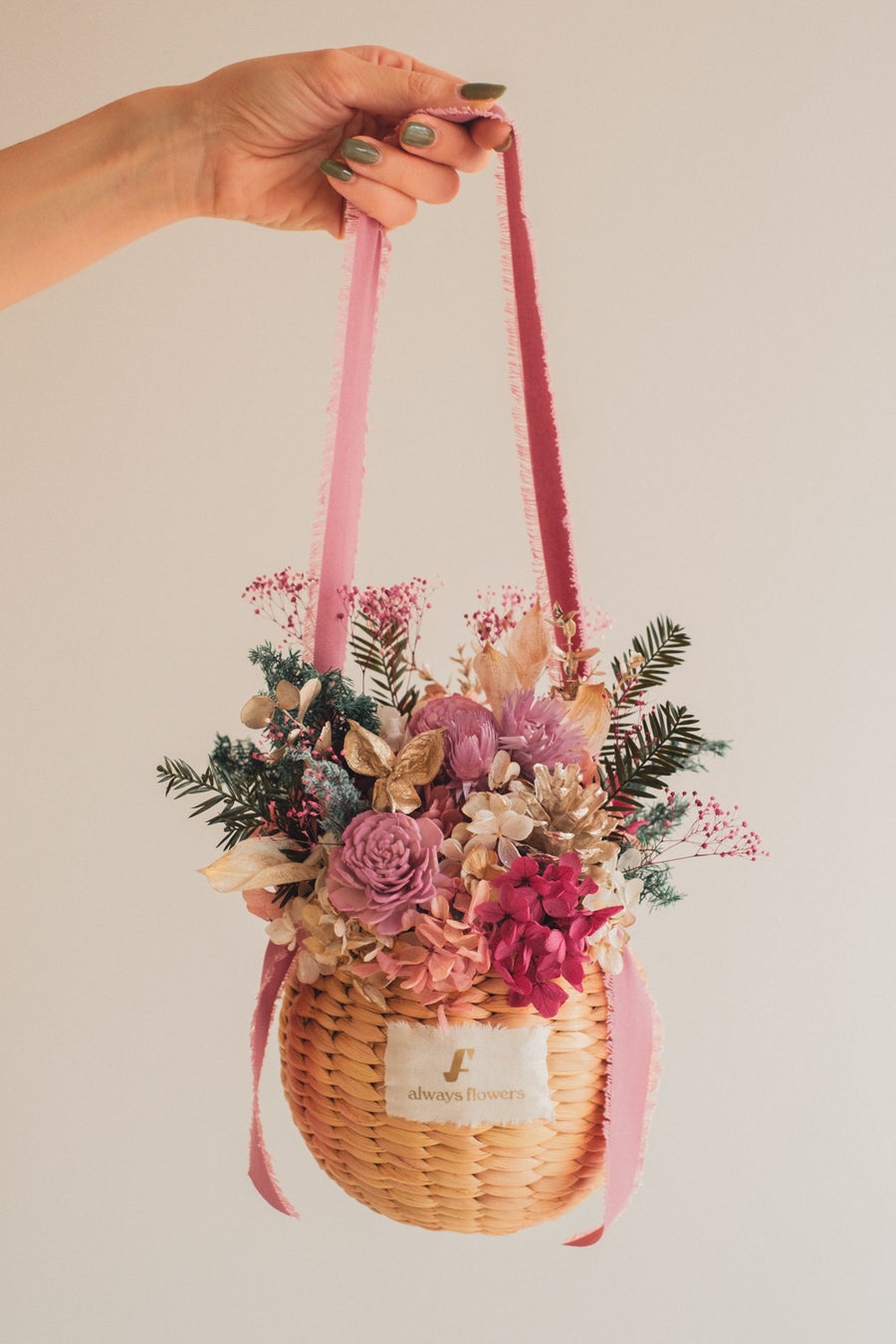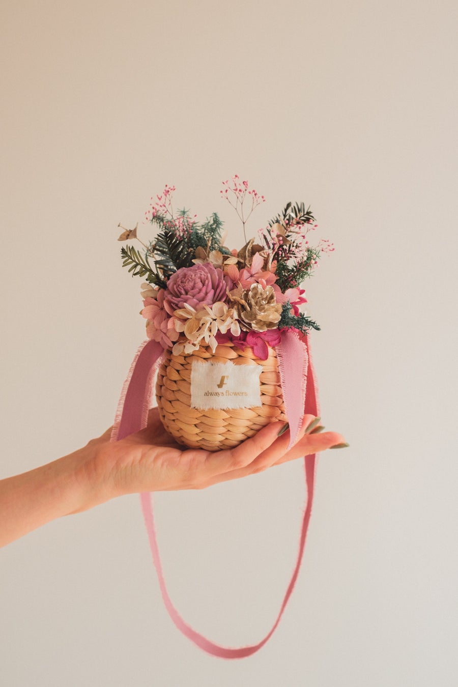 Flower BAG No.2 /カゴバッグアレンジ ロージーシュクレ/ドライ・プリザーブドフラワー