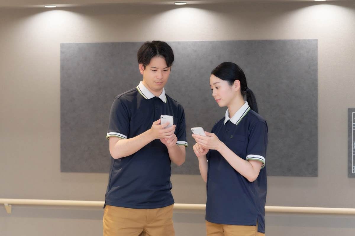 「EGAO link🄬」は、スマートフォン1台で各種記録の入力、コール対応、見守りが可能な業界初のシステムです。メーカー4社との共同開発により2017年に導入され実現しました。当社の介護付きホーム『アズハイム』シリーズ全てのホームに導入されるとともに、当社以外の介護施設でも利用されています。