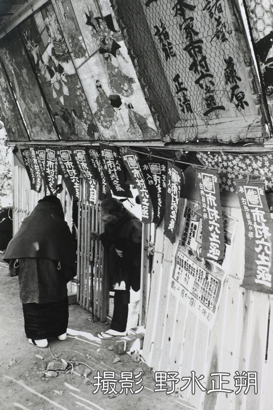 ちょうど写真が撮られた昭和30年代には、戦争の影響もあり淡路島の人形浄瑠璃の座元は3、4座まで減っていました。本来の形であった「野掛け小屋」として公演していたのはこの頃が最後、貴重な写真です。