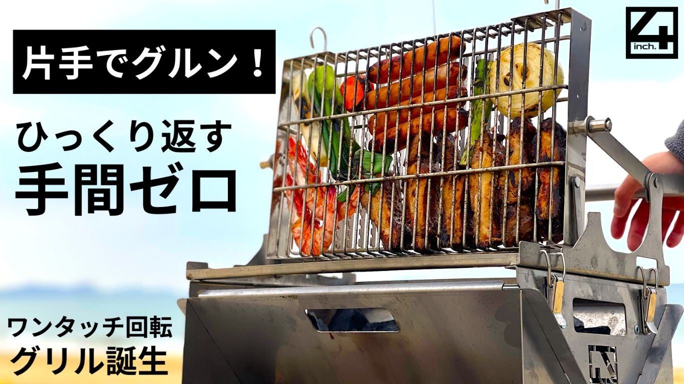 片手でグルン、ワンプッシュで食材を裏返す新感覚のキャンプ用グリル スマートグリル