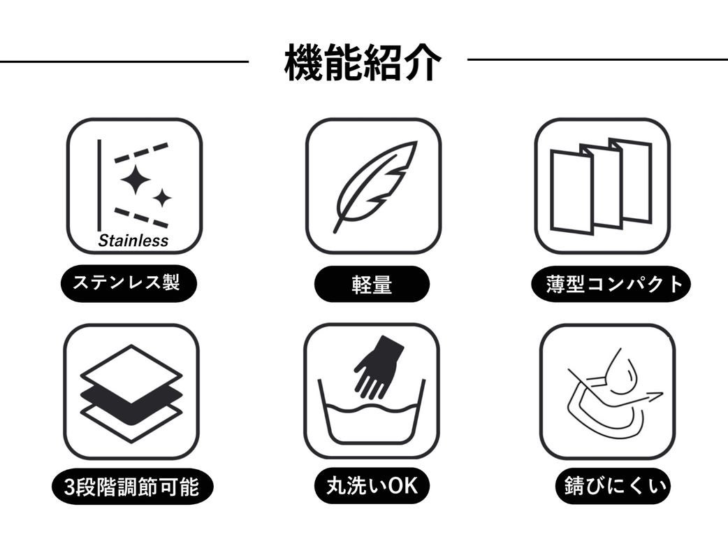 ・軽量でありながら耐久度の高いステンレス製。
