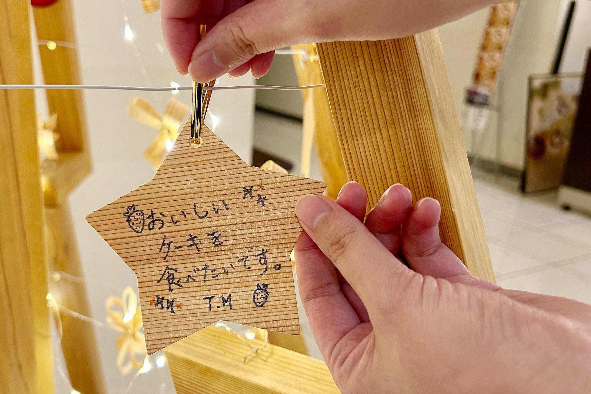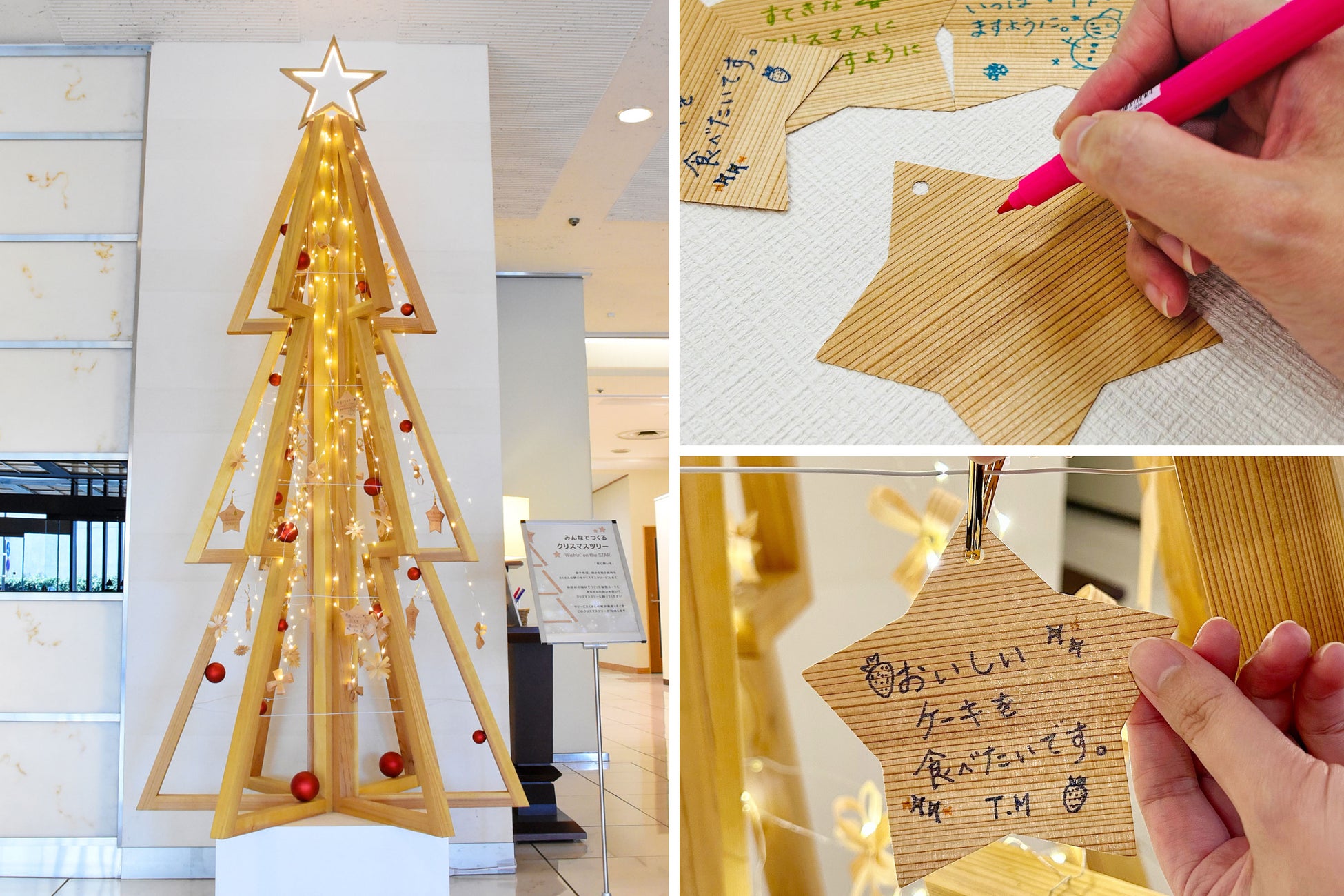 【秋田キャッスルホテル】お客様参加型のクリスマス装飾が新登場。秋田杉の星型カードに願いを書いてみんなでツリーを完成させよう!