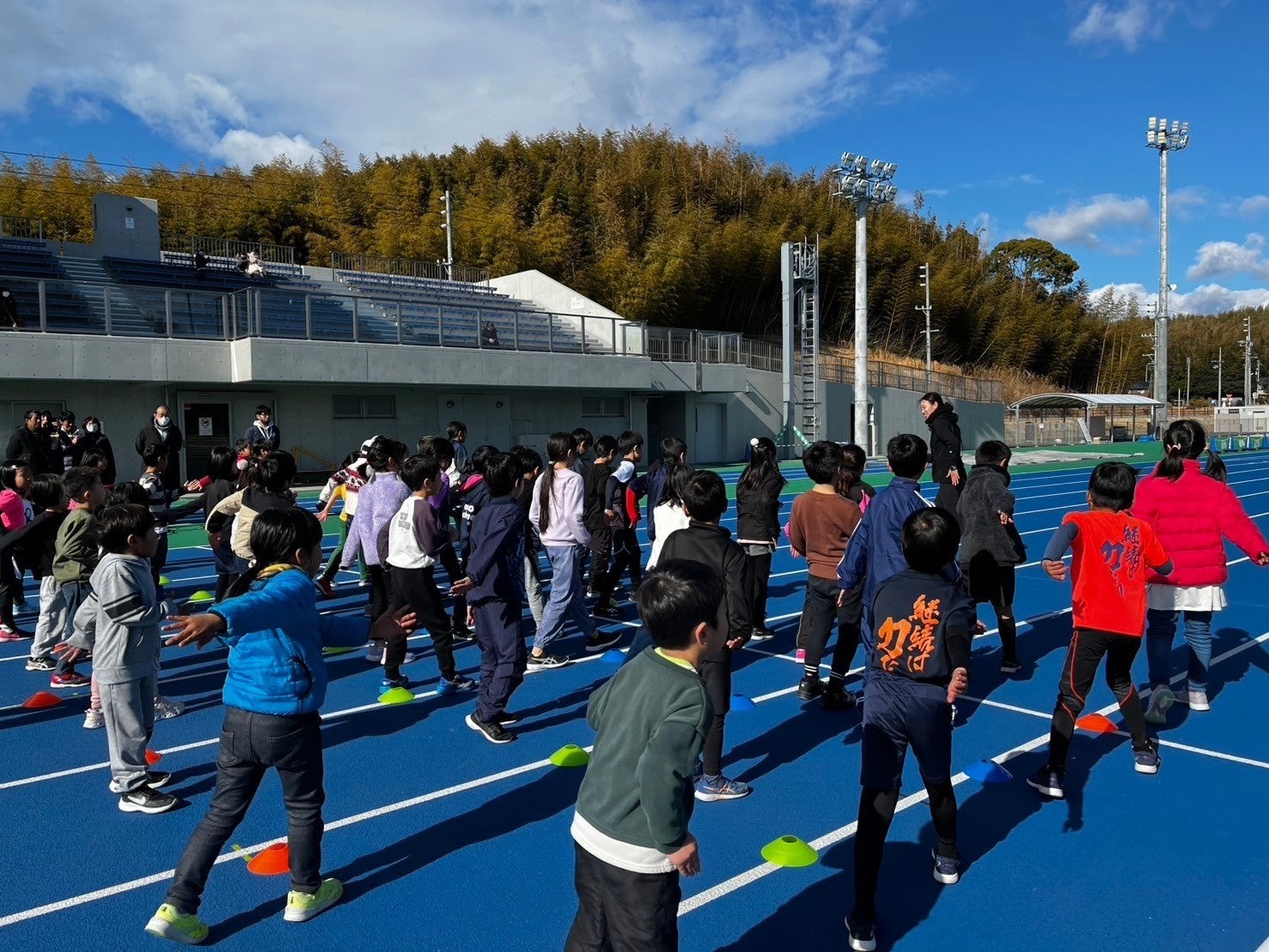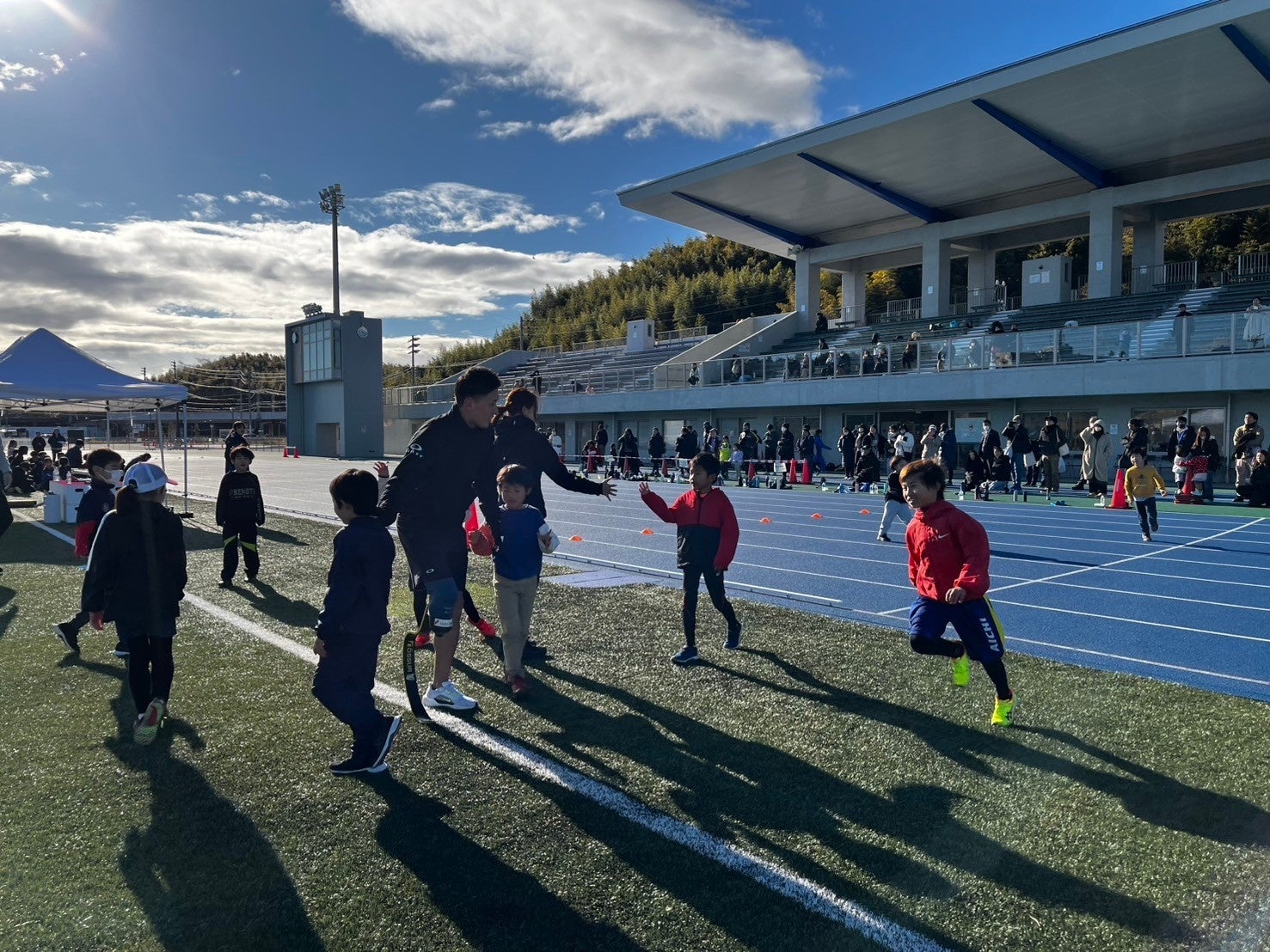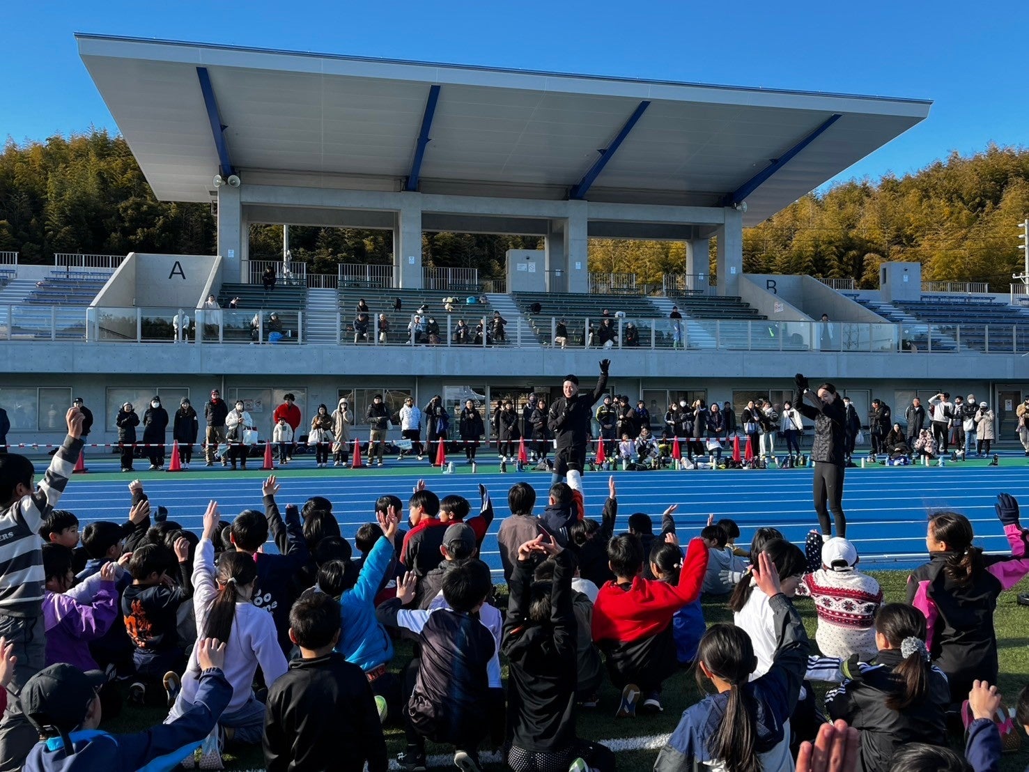 教わったことを思い出しながらタータンの上を力いっぱい駆け抜ける子どもたちを、みんな笑顔で応援!最後は福島さん、井谷選手とハイタッチでゴール。冬の寒さも吹き飛ぶ盛り上がりを見せてくれました。