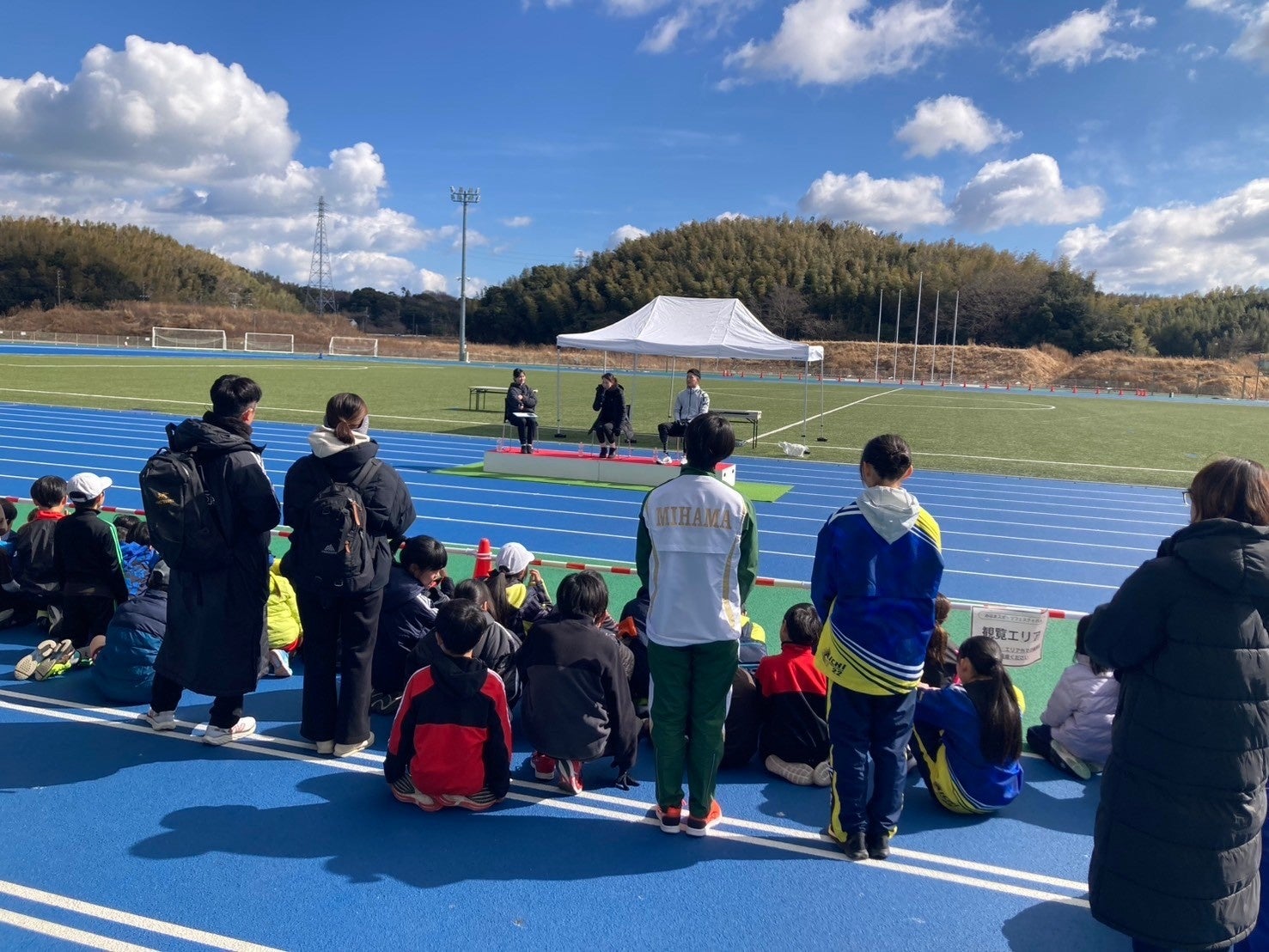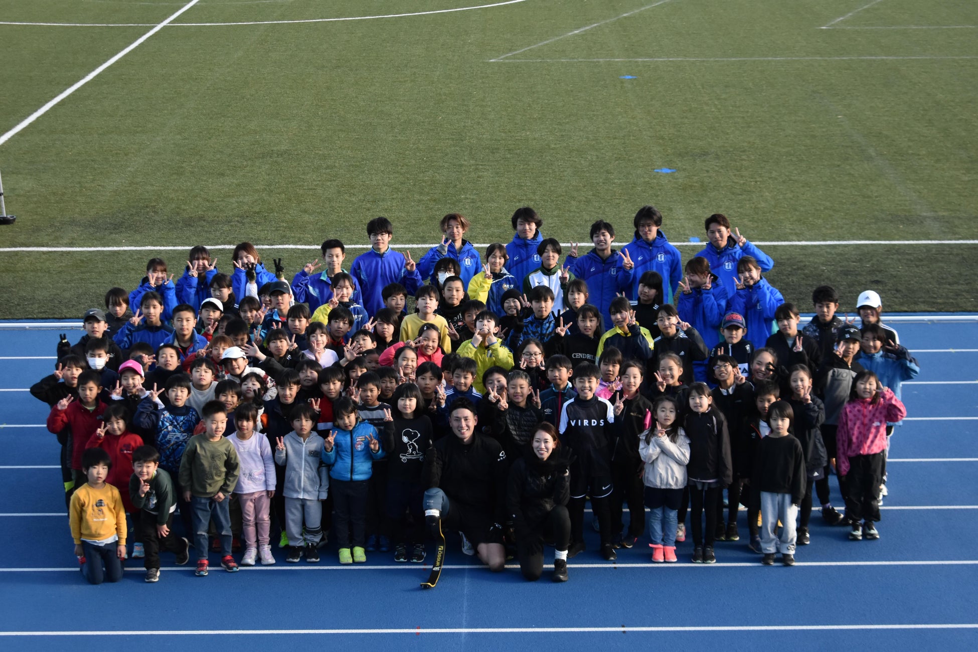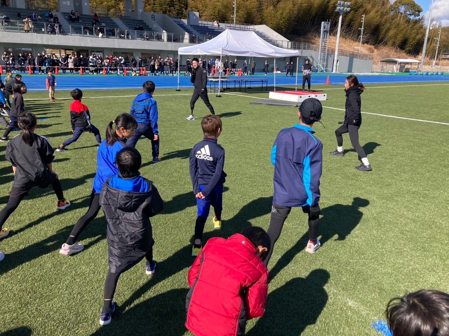 教わったことを思い出しながらタータンの上を力いっぱい駆け抜ける子どもたちを、みんな笑顔で応援!最後は福島さん、井谷選手とハイタッチでゴール。冬の寒さも吹き飛ぶ盛り上がりを見せてくれました。