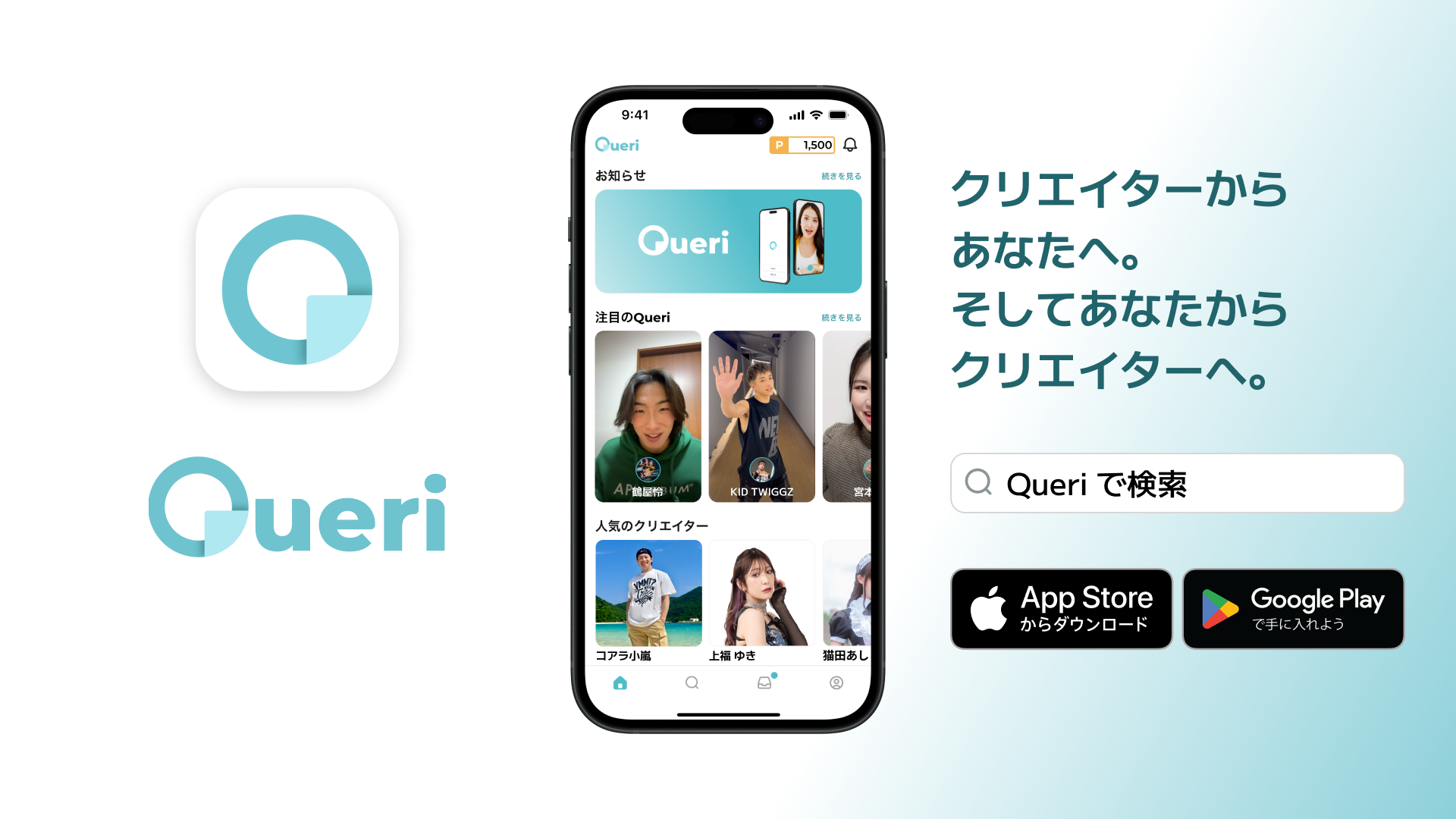 「Queri」はApp Store及びGoogle Playからダウンロードできます:https://queri.co.jp/download