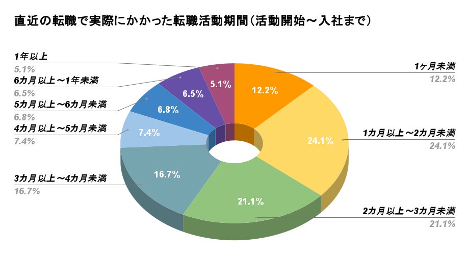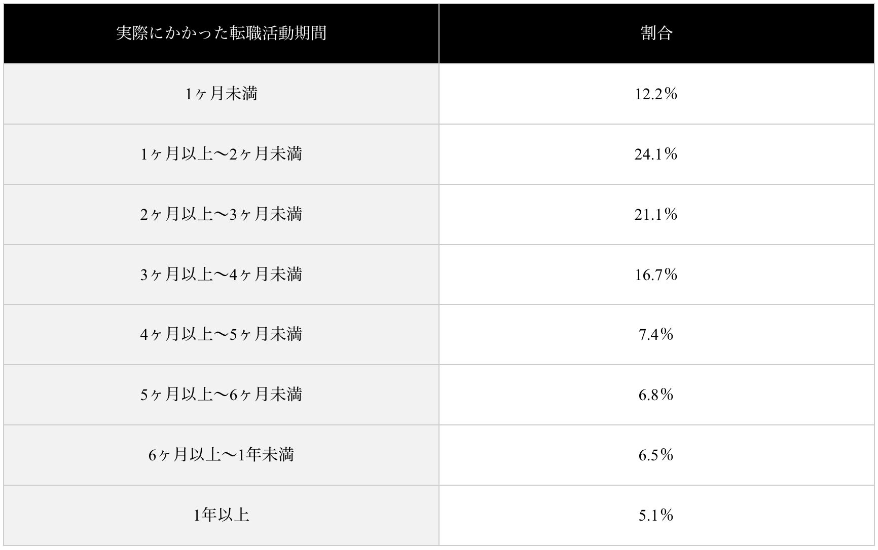 実際にかかった転職活動期間を調査した結果は以下のようになりました。