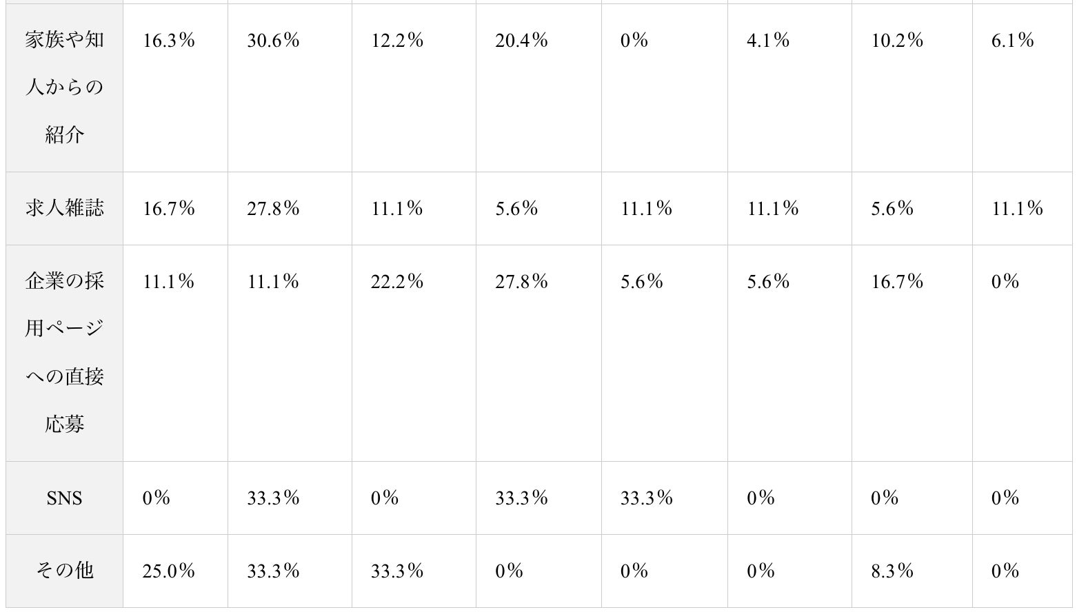 転職活動期間が2ヶ月以内に終わったと回答した割合が多かったのは「家族や知人からの紹介」です。身近な人からの紹介で転職する場合は、一般選考より応募から面接までスムーズに進む傾向があります。