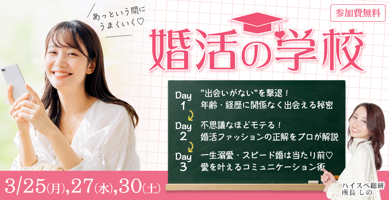幸せな結婚を叶えたい女性のための無料オンラインイベント「婚活の学校」を開催<ハイスぺ男子総合研究所>