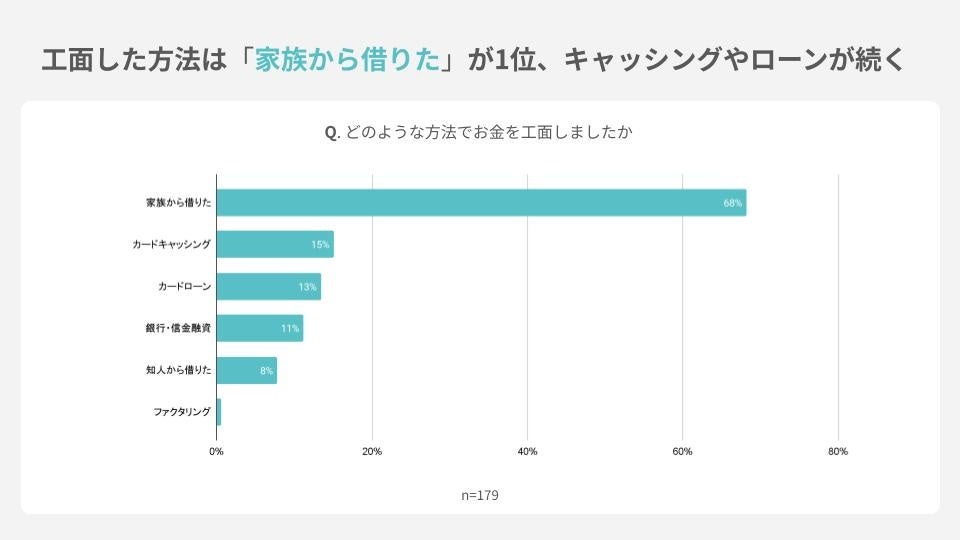 フリーランスの多くが、家族や知人からの借り入れに頼る一方、カードローンやカードキャッシングなど、消費者金融によるサービスの利用も一般的であることが分かりました。
