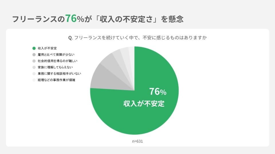 ・フリーランスの76%が「収入の不安定さ」を懸念