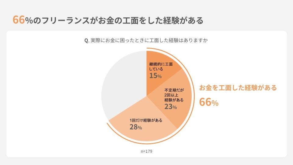 66%のフリーランスが「過去にお金に困って工面をしたことがある」と回答しました。