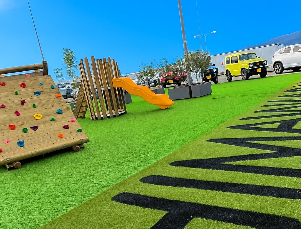 展示場には遊具と緑の空間がり、お子様はもちろんお父様、お母様も一緒に楽しんでいただけます。